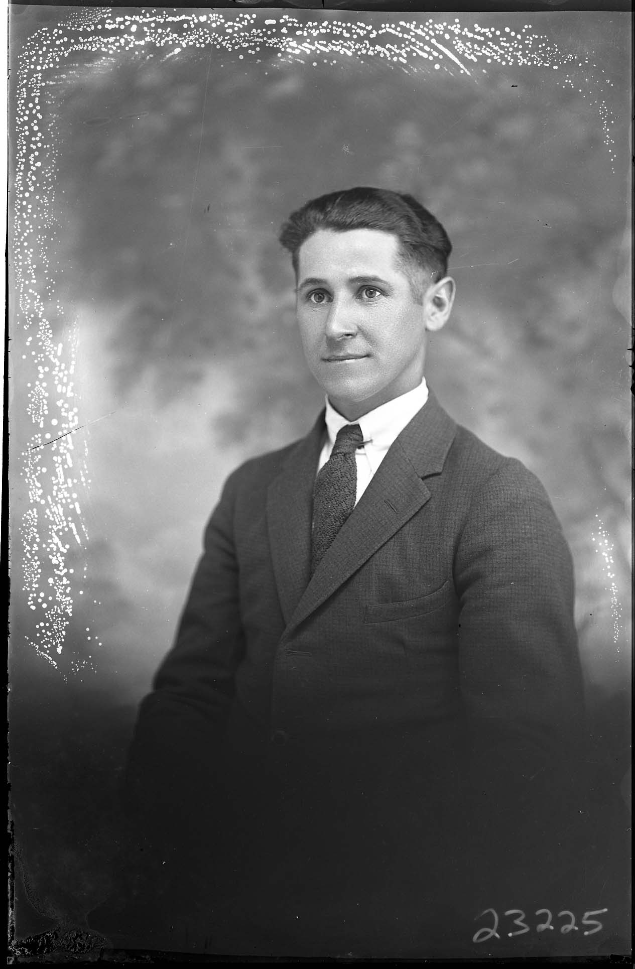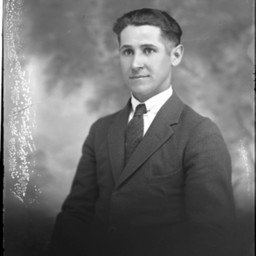 Portrait photograph of an unidentified young man wearing a suit and tie.