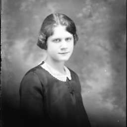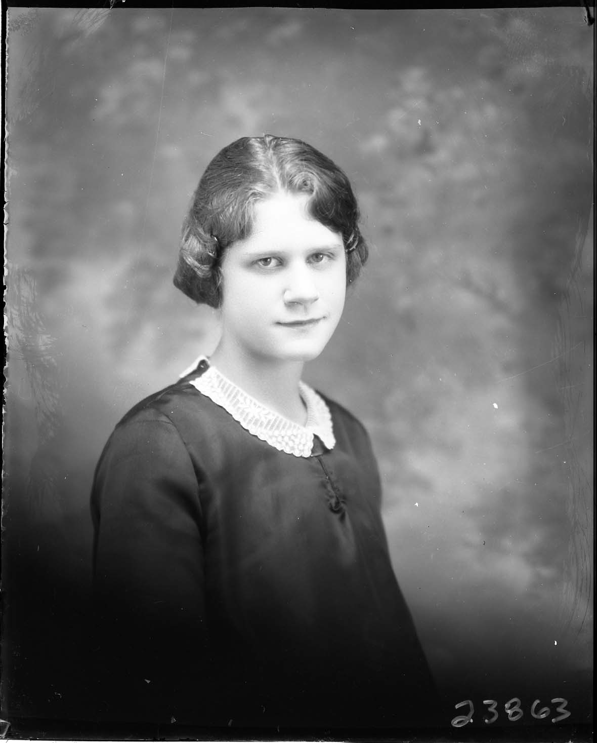 Portrait photograph of an unidentified woman with short hair and a lace collar on her dress.