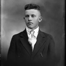 Portrait photograph of an unidentified young man wearing a suit and tie.