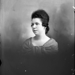 Portrait photograph of an unidentified woman with styled hair and looking to the side, almost in profile.