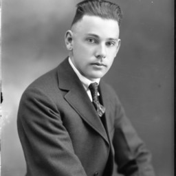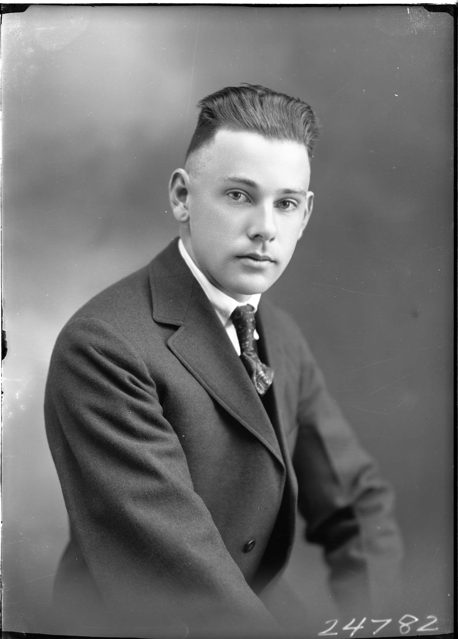 Portrait photograph of an unidentified young man wearing a suit and tie.