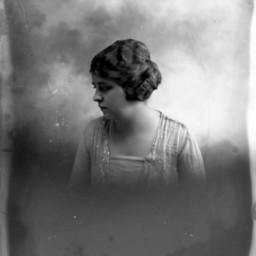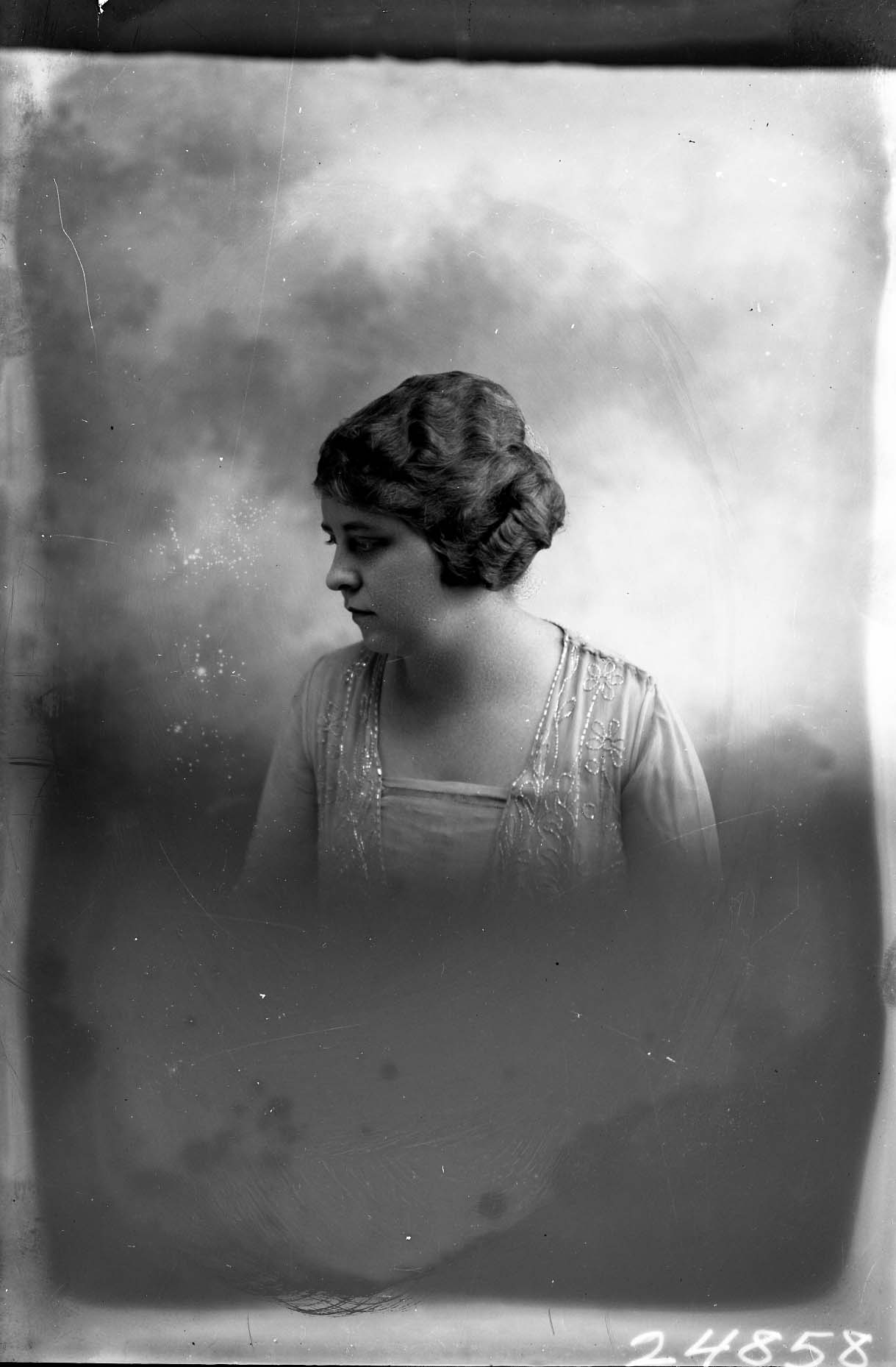 Portrait photograph of an unidentified woman turned to the side, almost in profile.