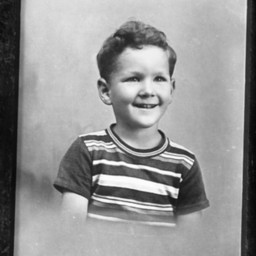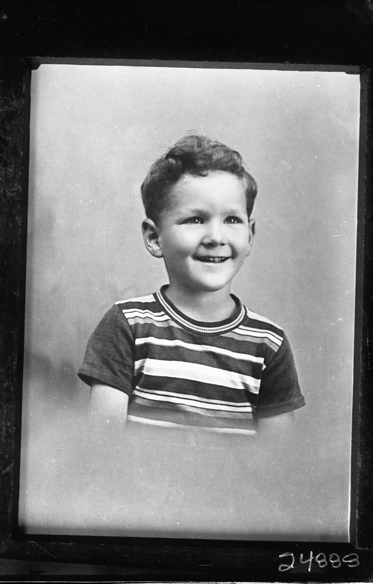 Photo of a portrait photograph of "Butch Humphreys" as a young boy in a striped shirt.