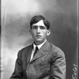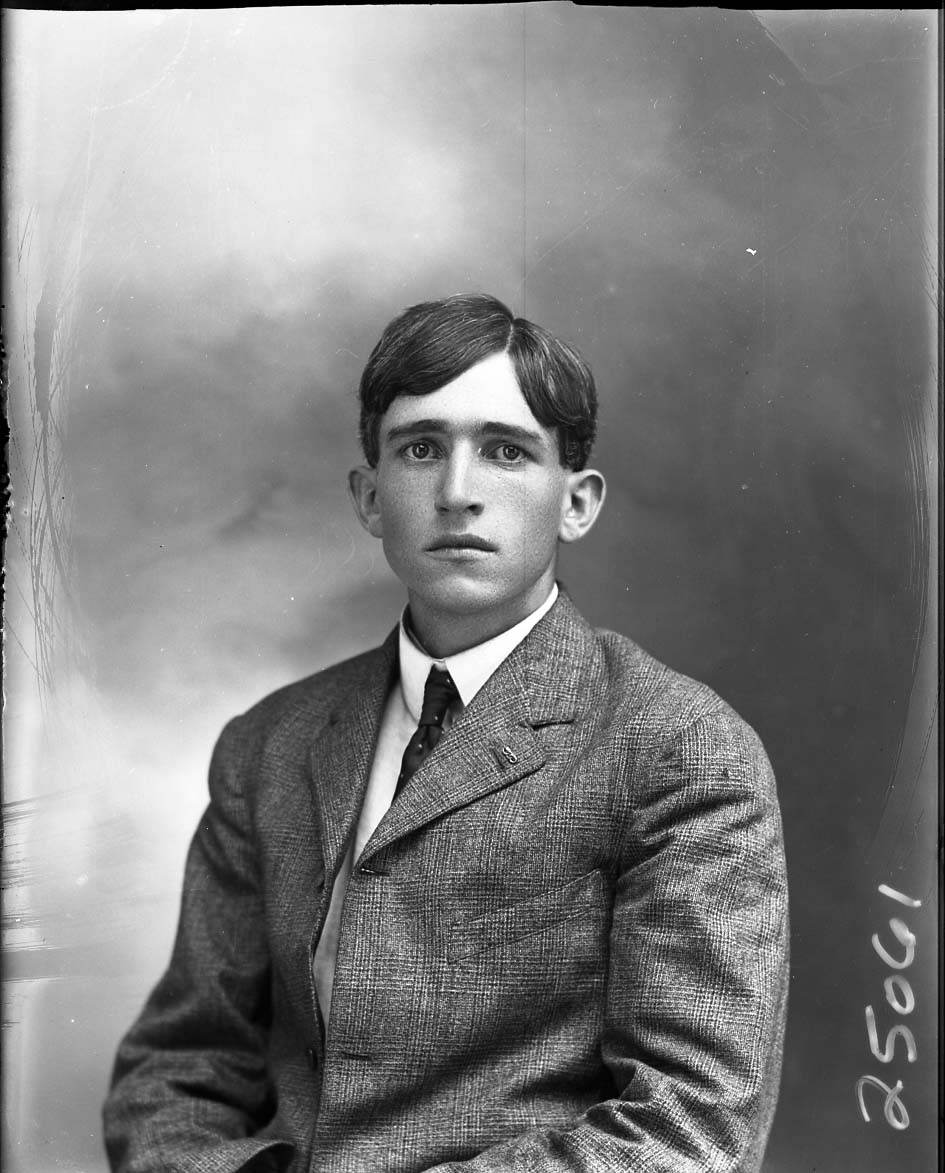 Portrait photograph of an unidentified young man wearing a suit and tie.