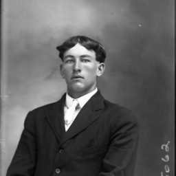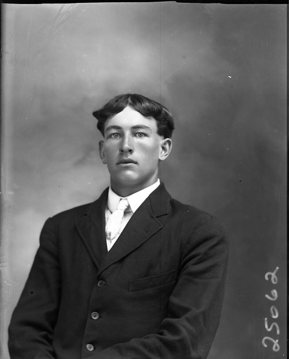 Portrait photograph of an unidentified young man wearing a suit and tie.