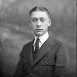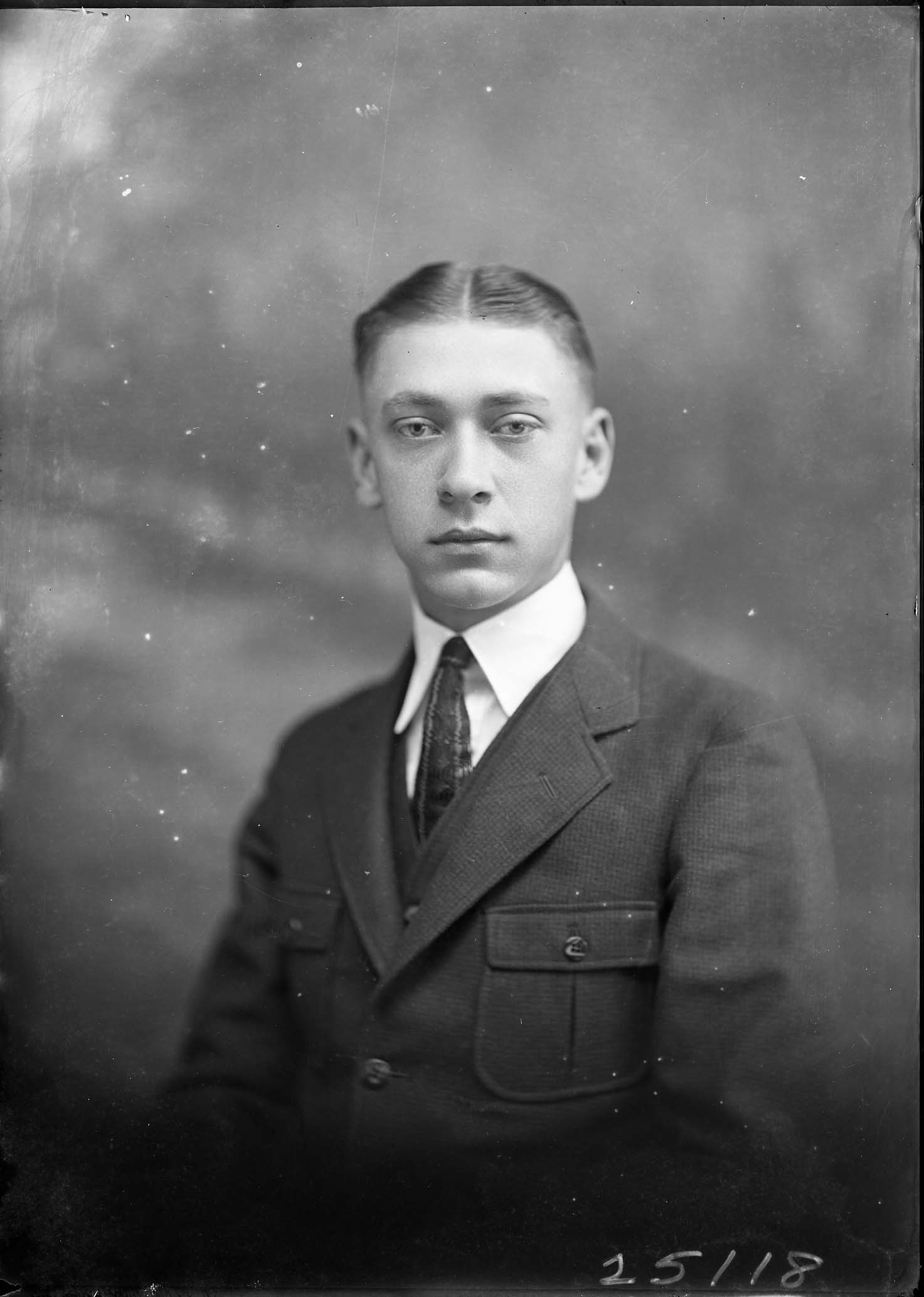 Portrait photograph of an unidentified young man wearing a suit and tie.
