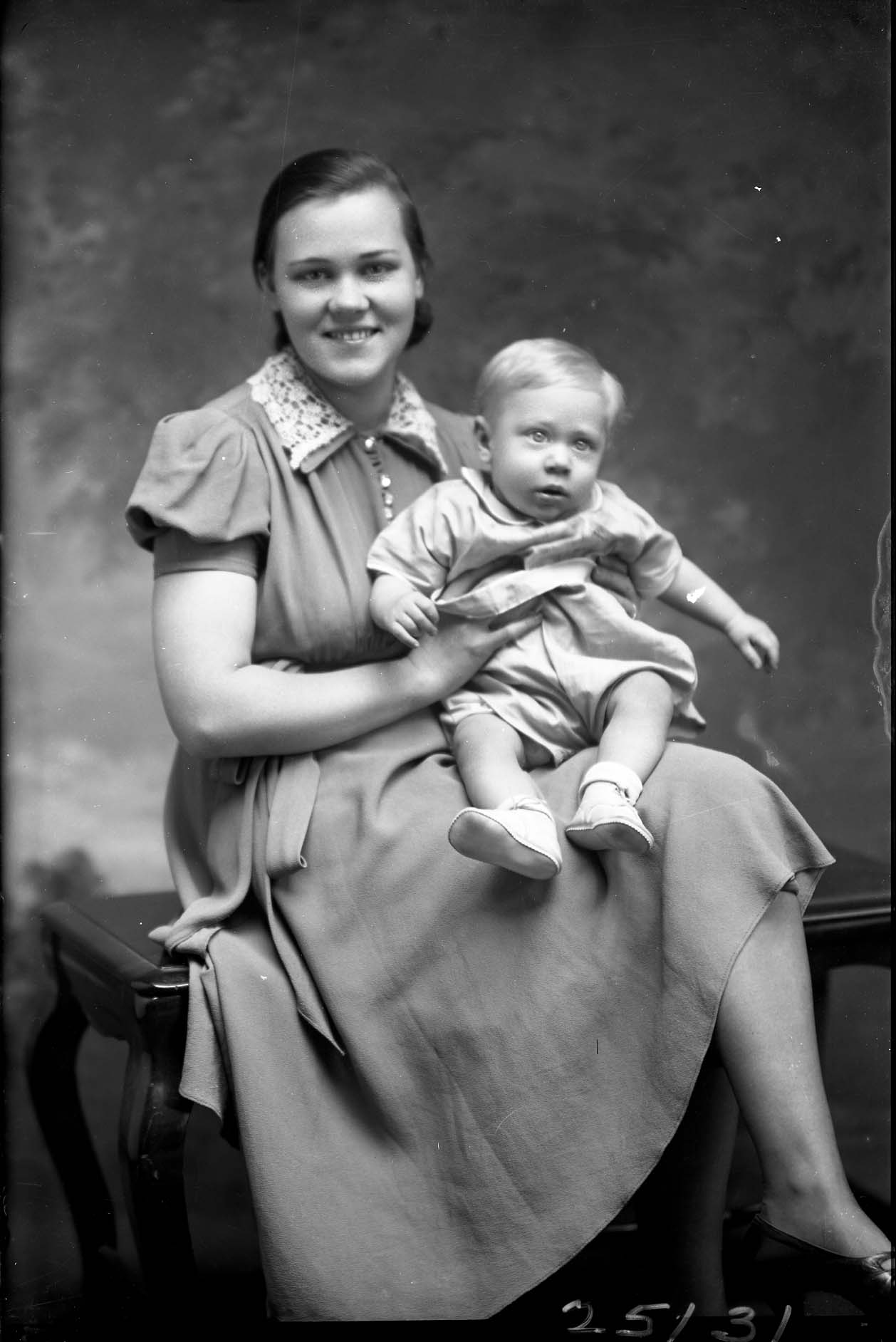 Photograph of Annie Lee (Marley) Funkhouser, seated, and holding her son, Charles William Funkhouser.