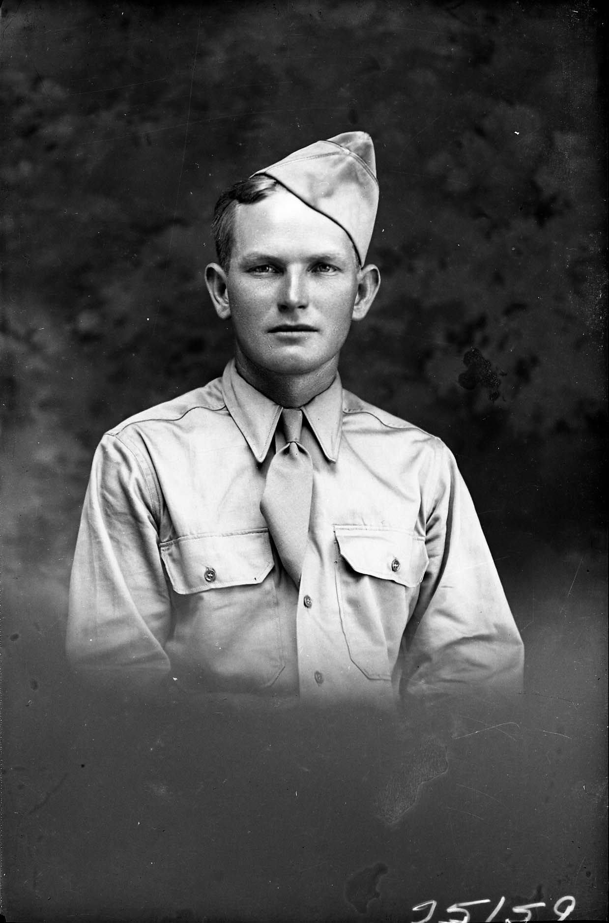 Portrait photograph of an unidentified man wearing his U.S. Army uniform.