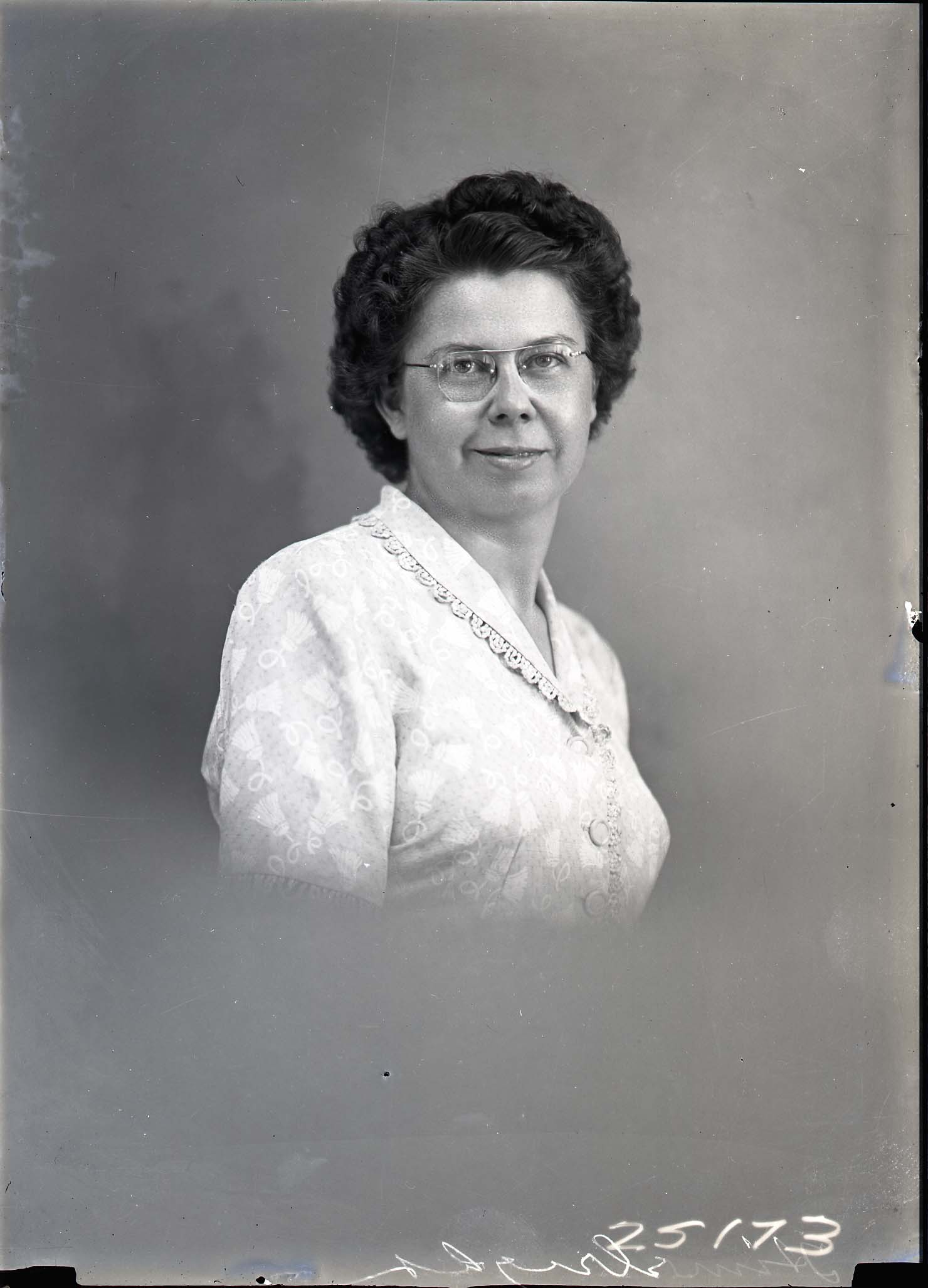 Portrait photograph of an unidentified woman with glasses and short hair.
