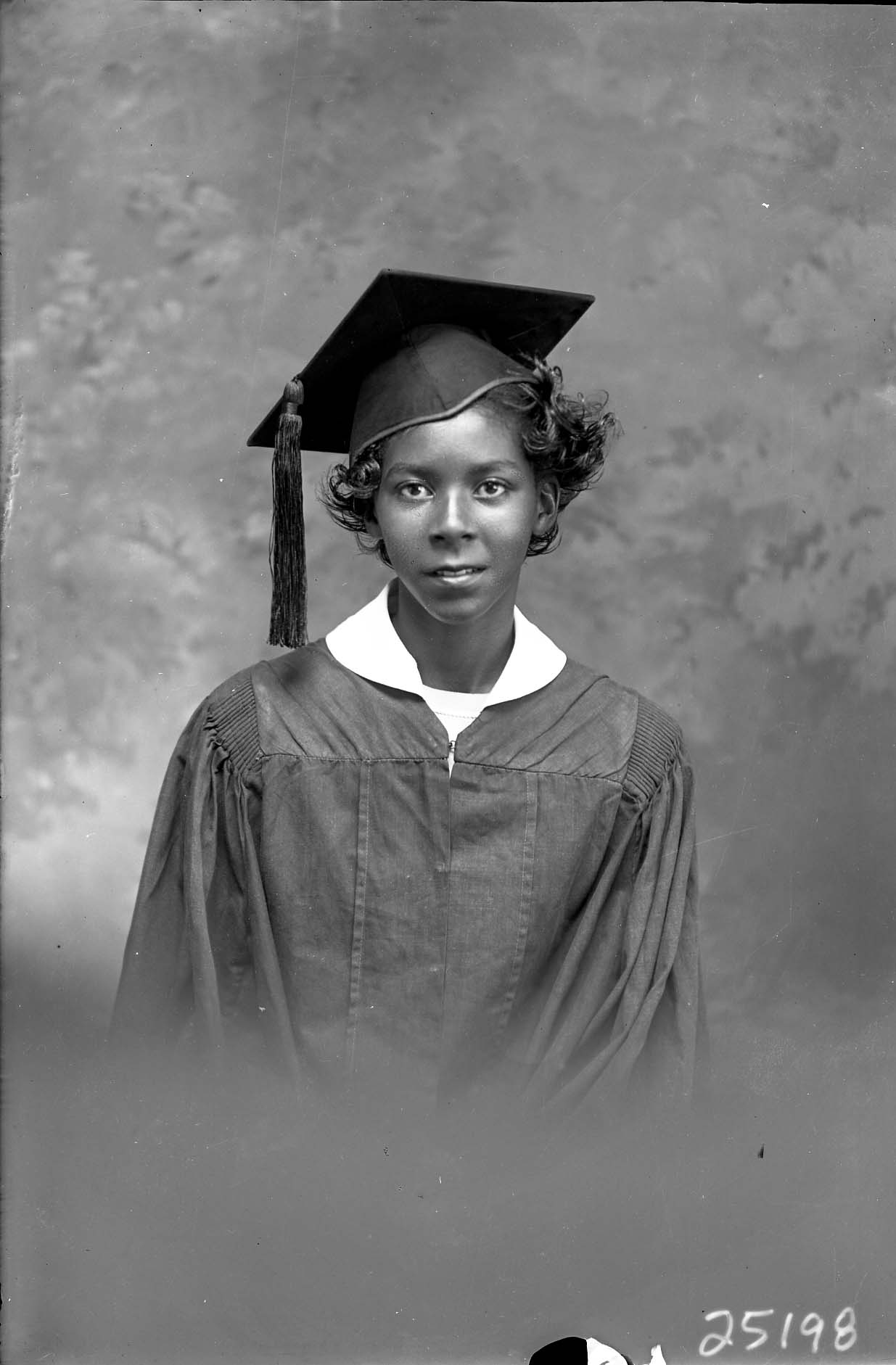 Photograph of Jean Dyer wearing a graduation cap and gown.