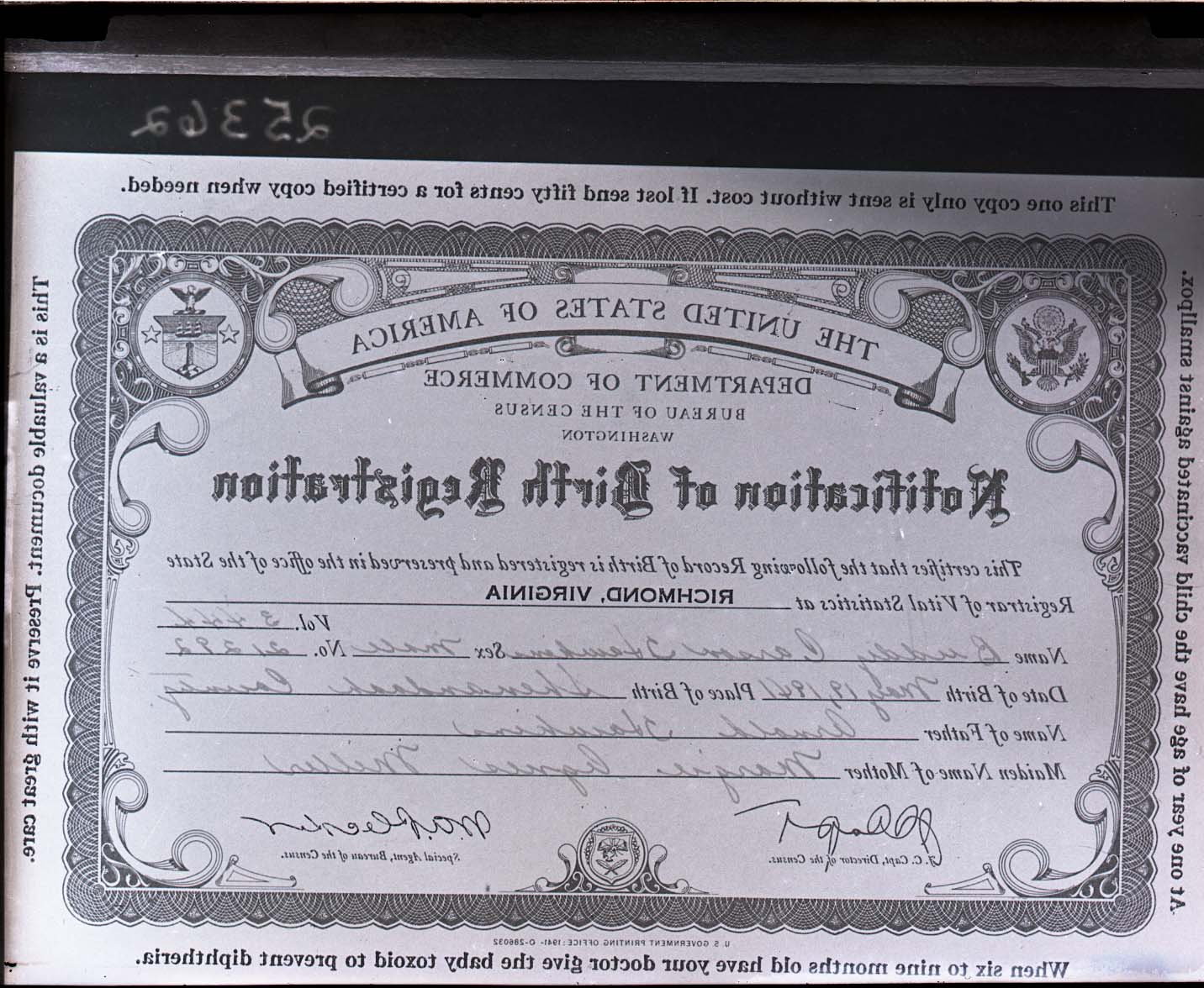 Morrison Studio, “Buddy Carson Hawkins' Birth Certificate,” Shenandoah County Library Archives, accessed December 5, 2025, https://archives.countylib.org/items/show/55025.