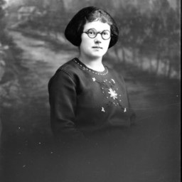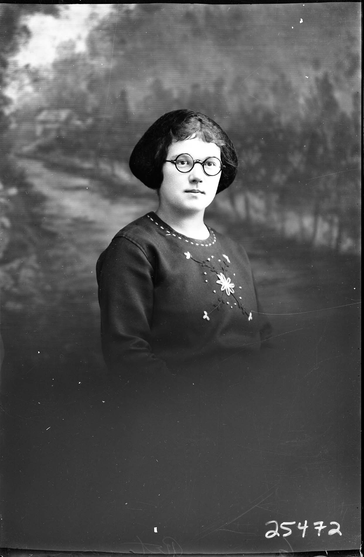 Portrait photograph of an unidentified young woman with short hair and round glasses.