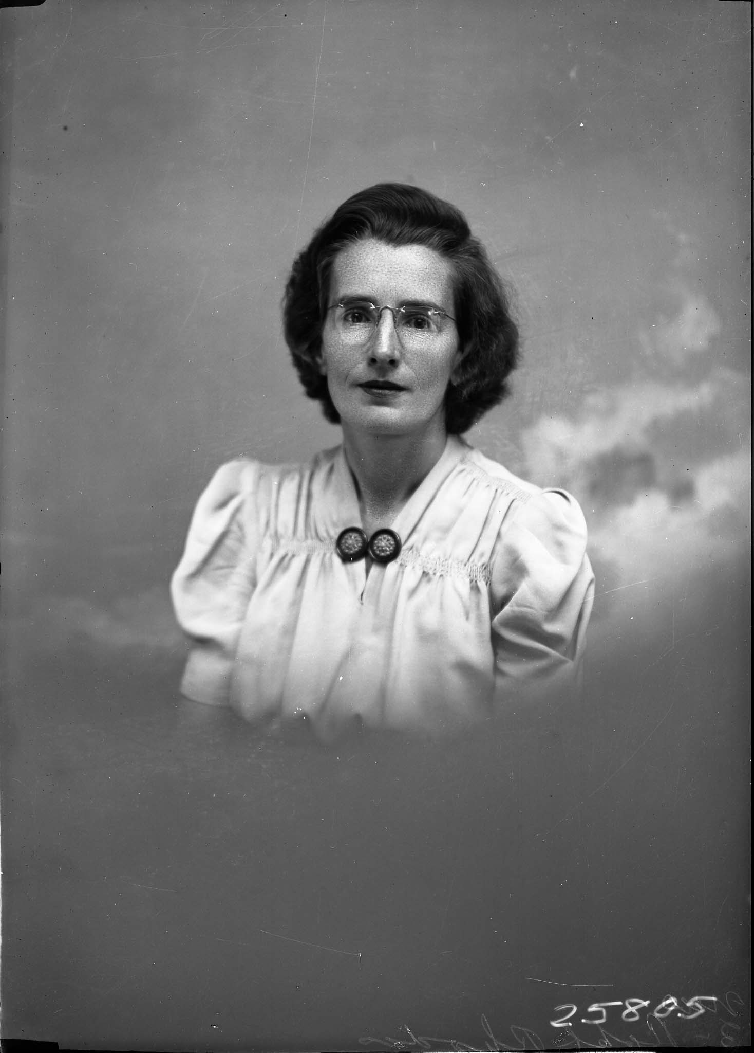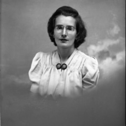Portrait photograph of an unidentified woman with short hair and glasses.