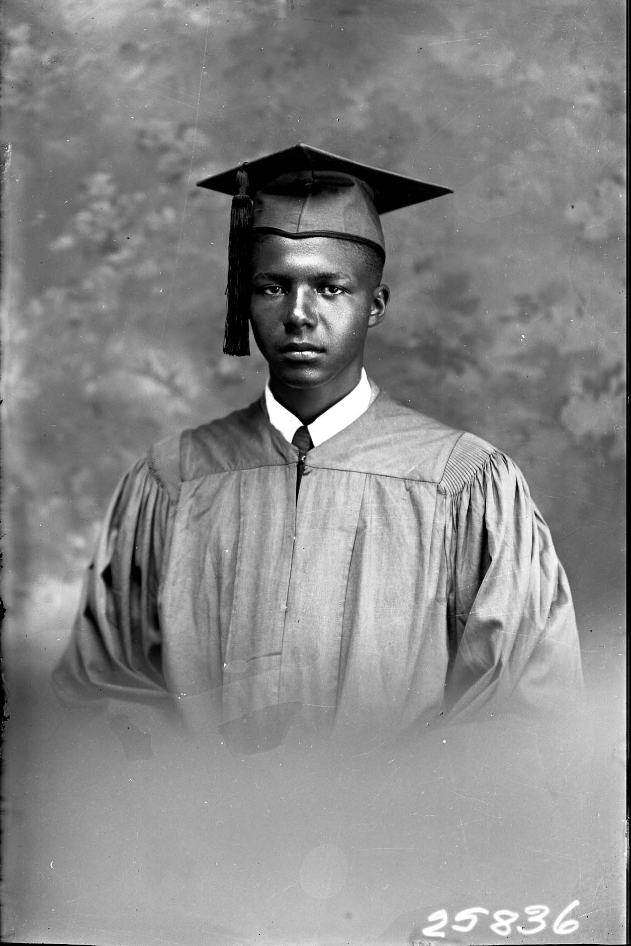 Portrait photograph of Perry E. Dyer in his graduation cap and gown.