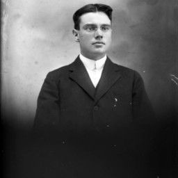 Portrait photograph of an unidentified man wearing pince-nez glasses and a starched collar with his buttoned jacket.