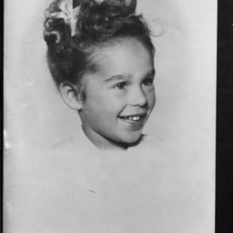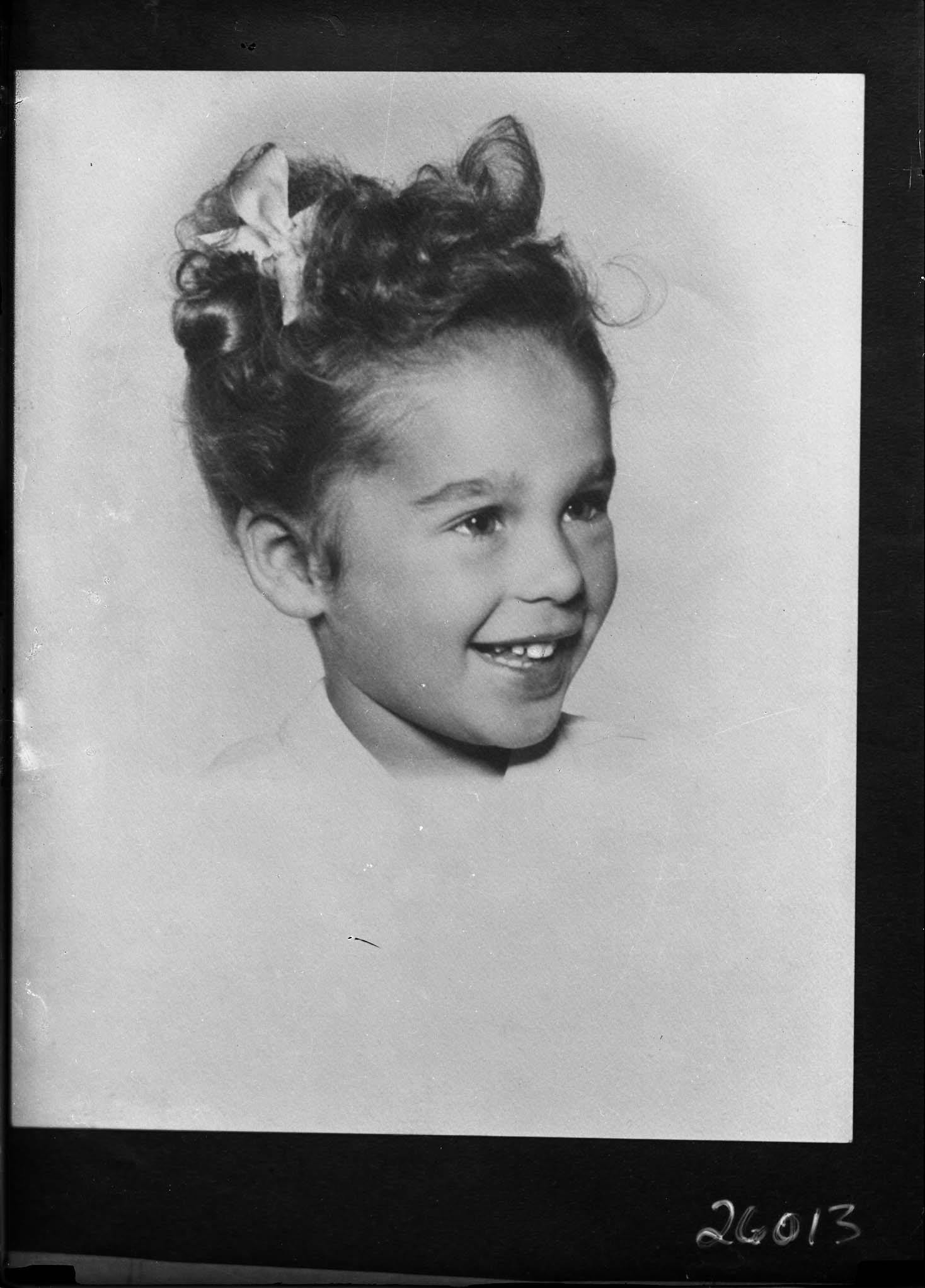 Photo of a portrait photograph of an unidentified young girl with a bow in her curled hair.