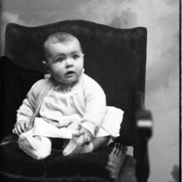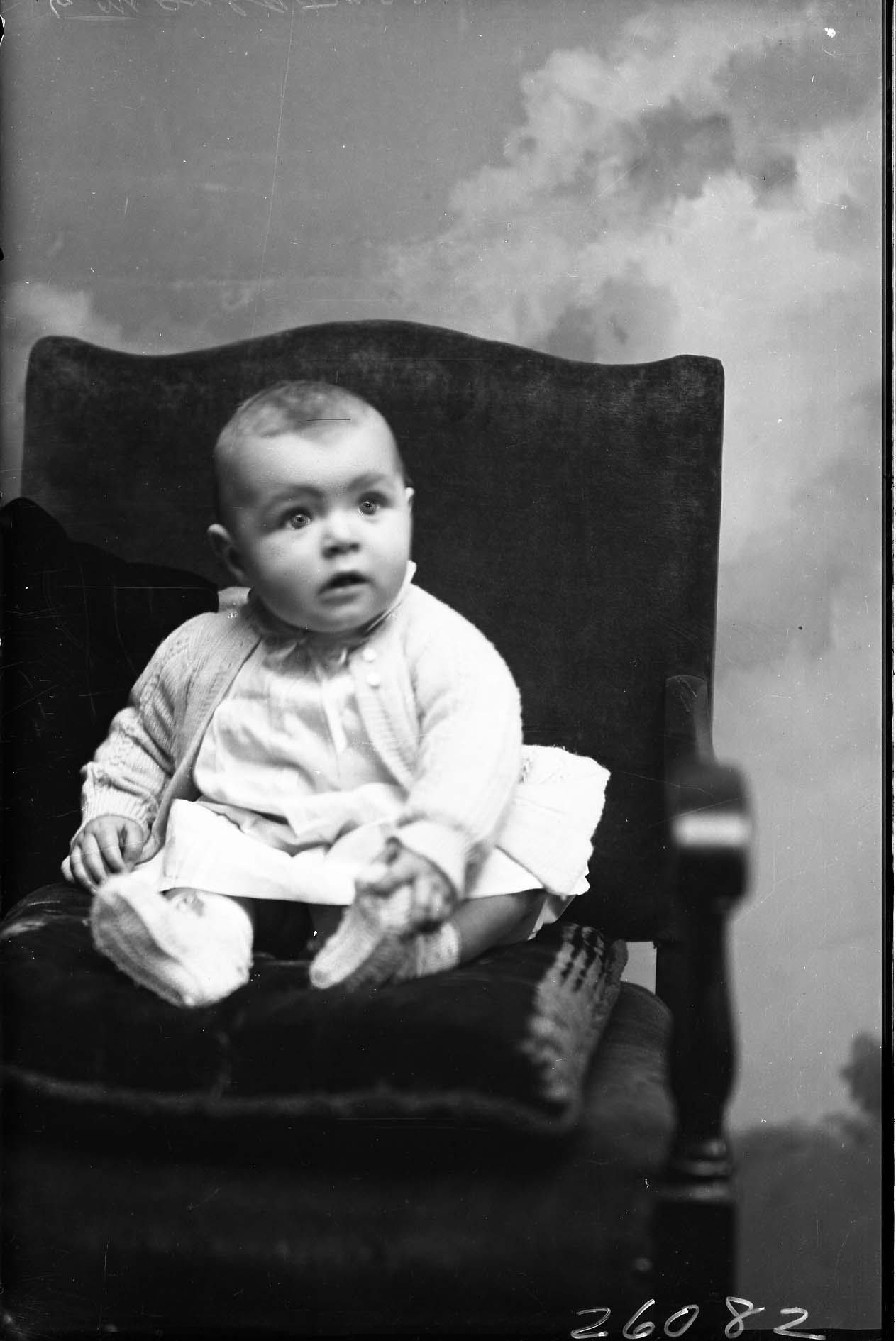 Unidentified toddler seated on a chair.