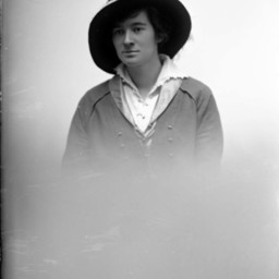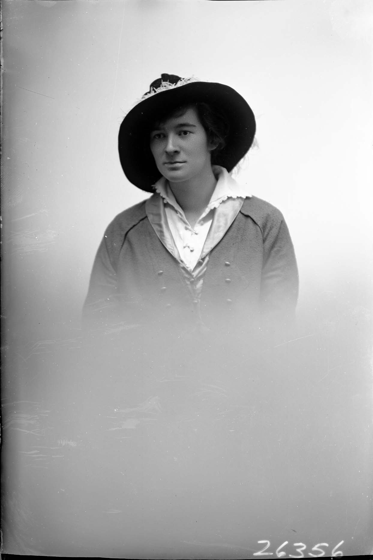Portrait photograph of an unidentified woman wearing a wide-brimmed hat.