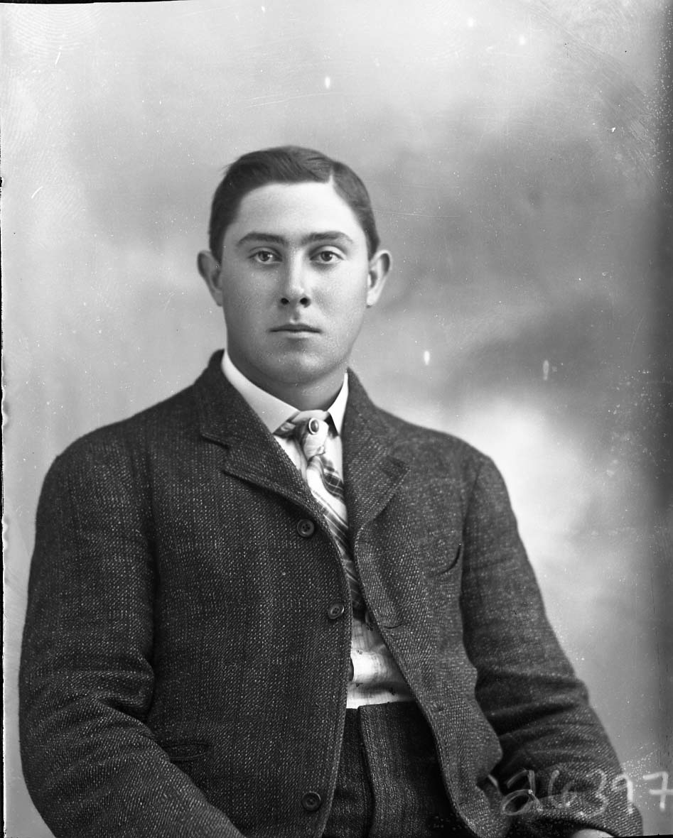 Portrait photograph of an unidentified man wearing a suit and tie.
