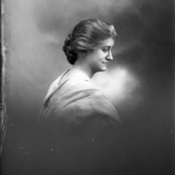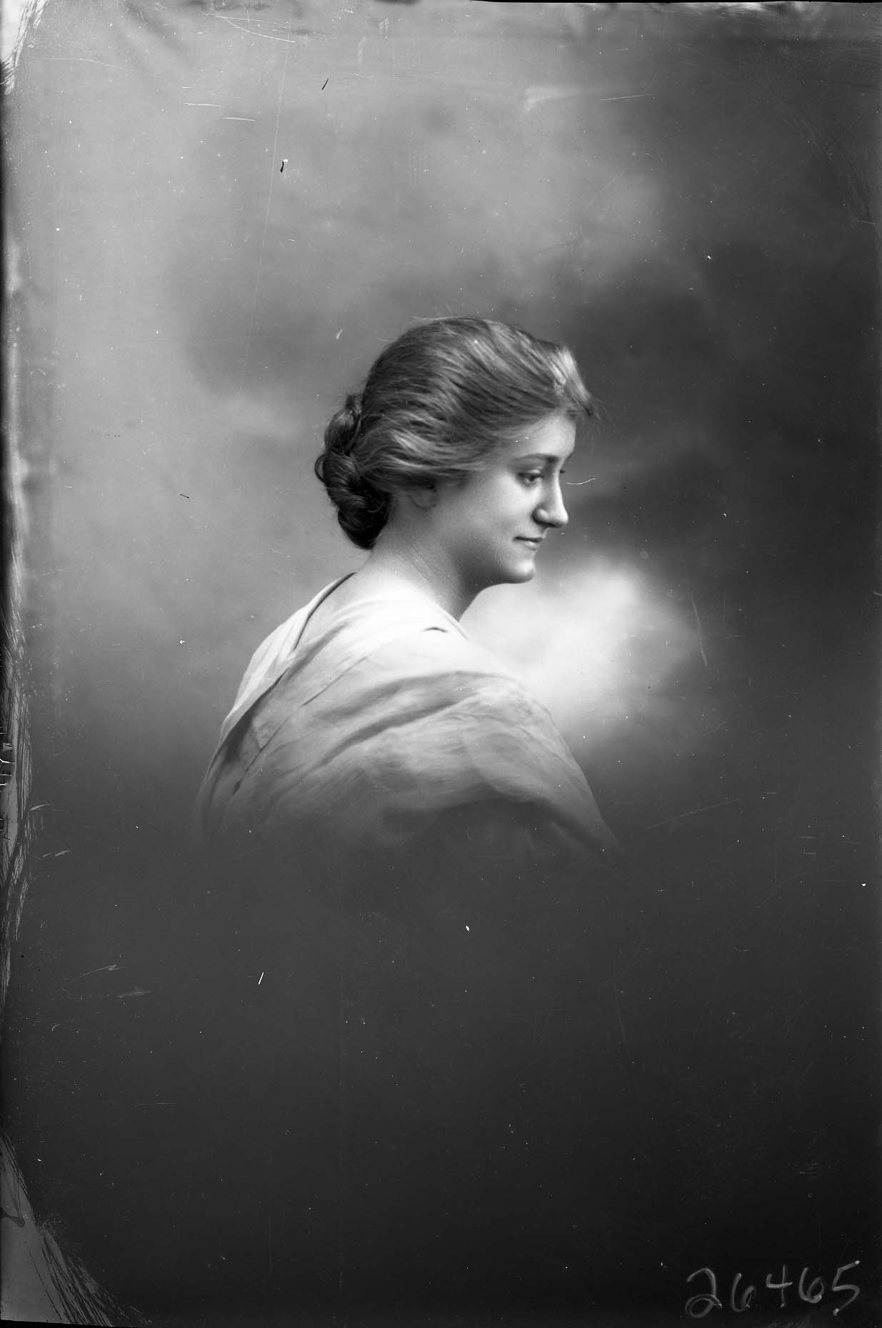 Portrait photograph of an unidentified woman looking to the side, in profile.