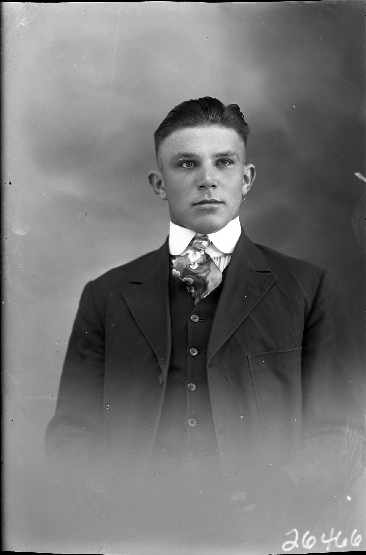 Portrait photograph of Dick Laughlin as a young man in a suit and tie.