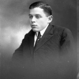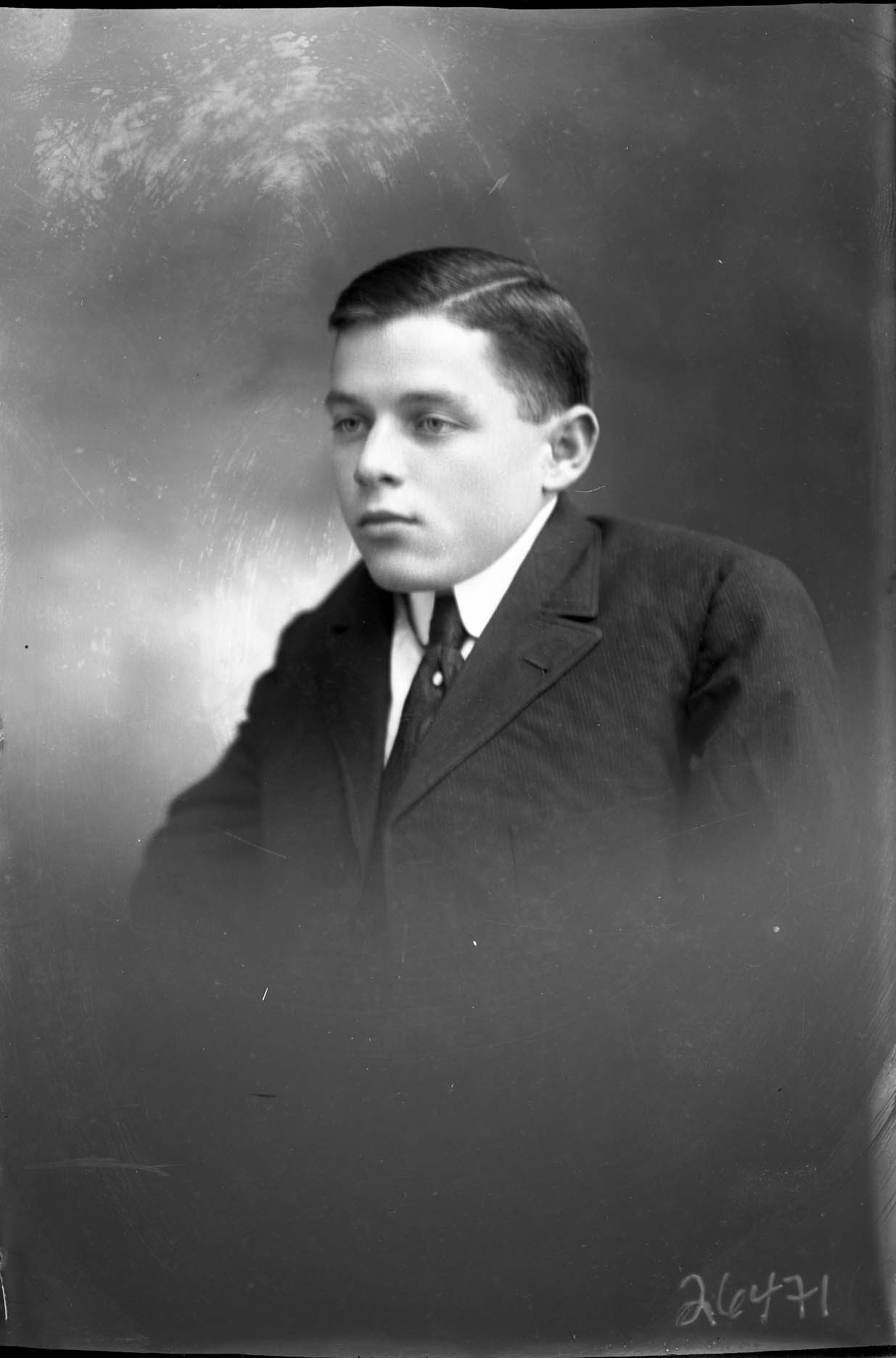 Portrait photograph of an unidentified young man wearing a suit and tie.