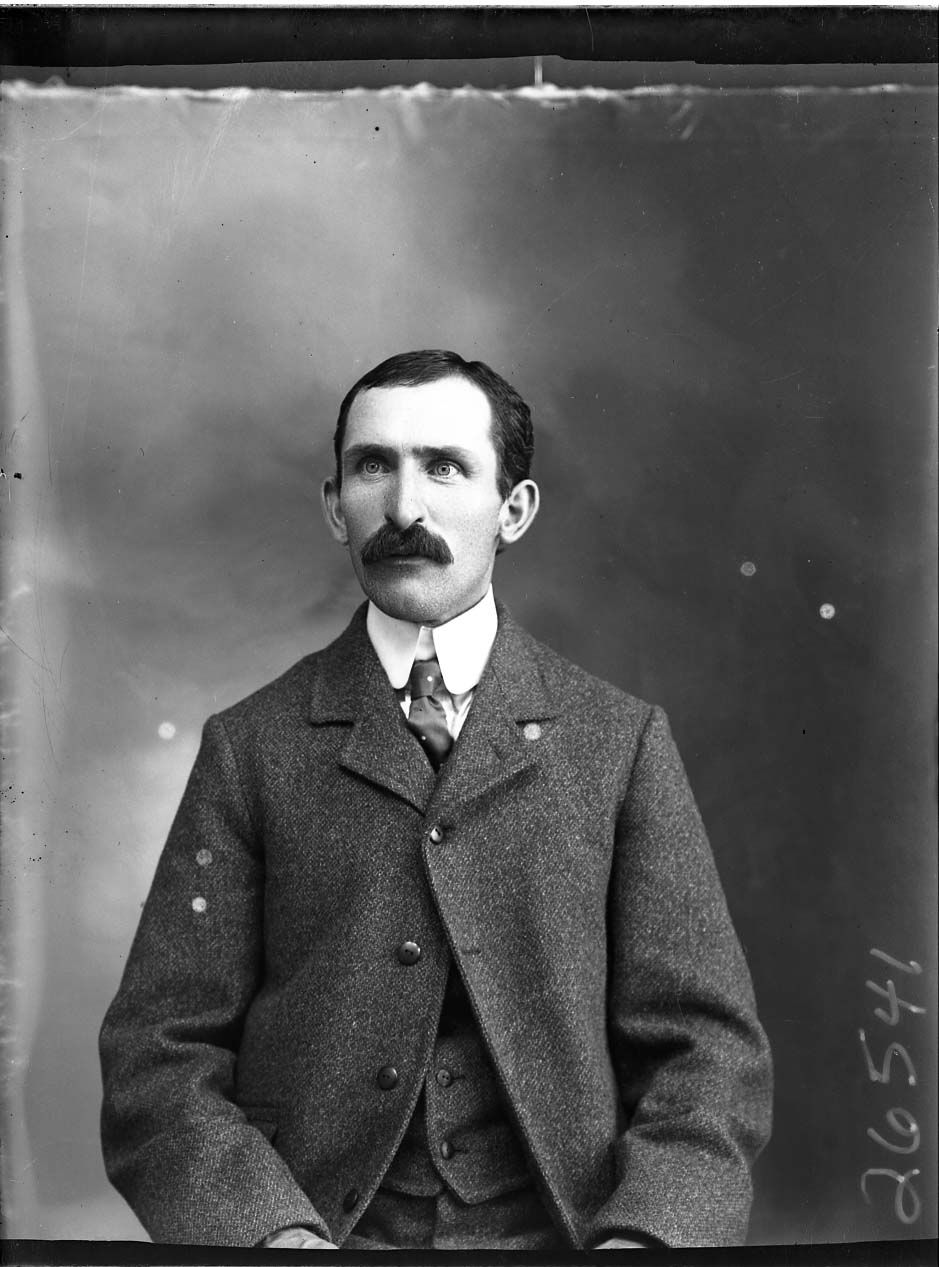 Photograph of an unidentified man with a mustache and wearing a suit and tie with a starched collar.