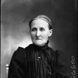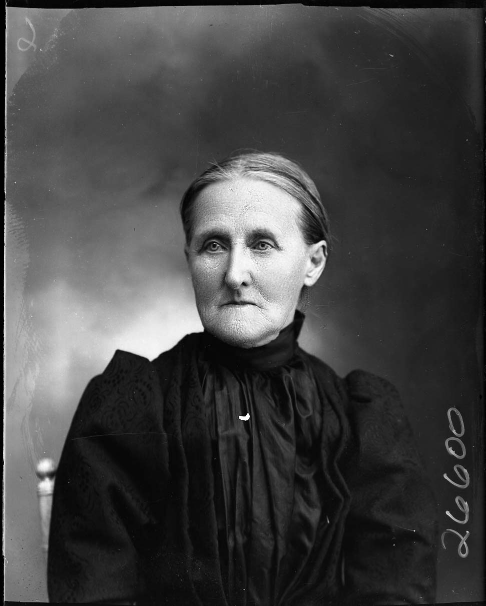 Portrait photograph of an unidentified older woman with her hair pulled back and parted in the middle.