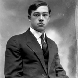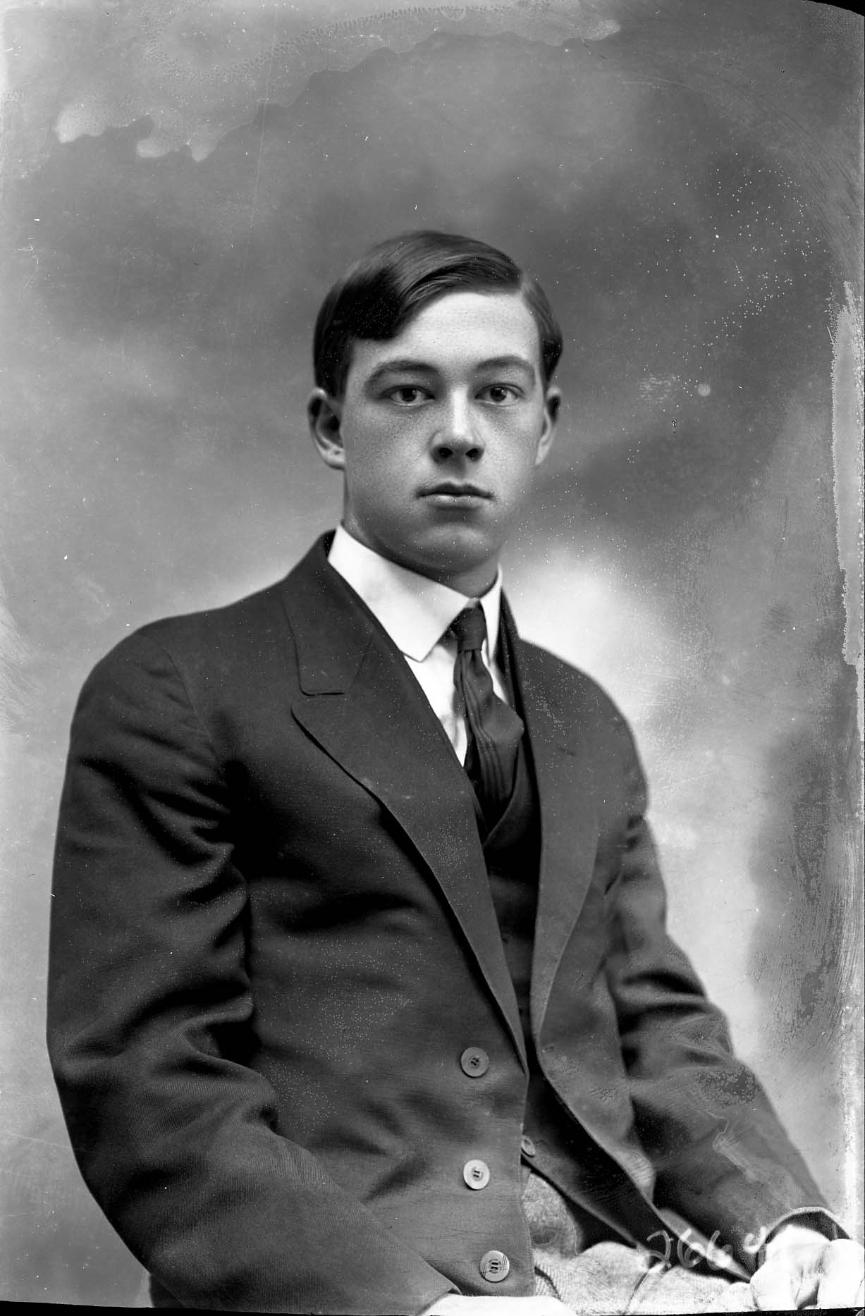 Portrait photograph of an unidentified young man wearing a suit and tie.