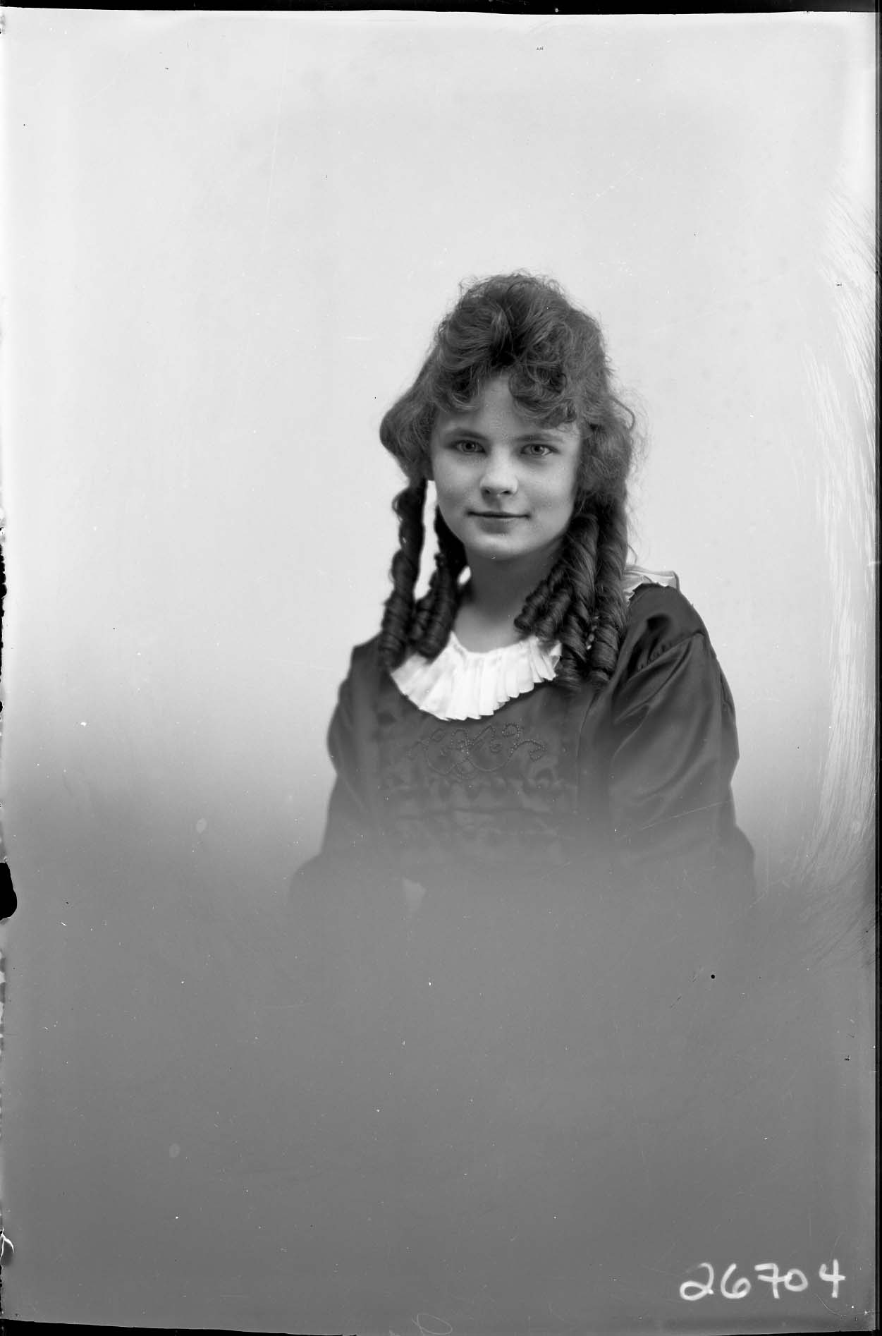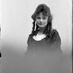 Portrait photograph of an unidentified young woman with curled hair.