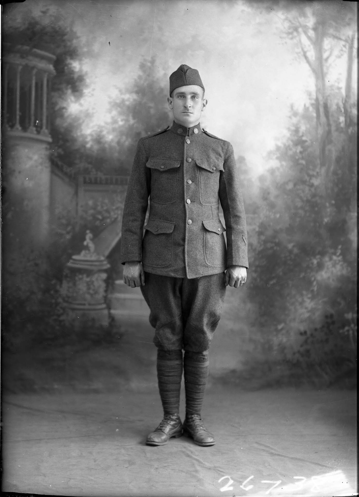 Unidentified young man wearing a U.S. Army uniform from the WWI timeframe.