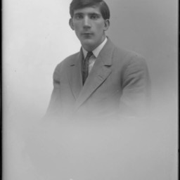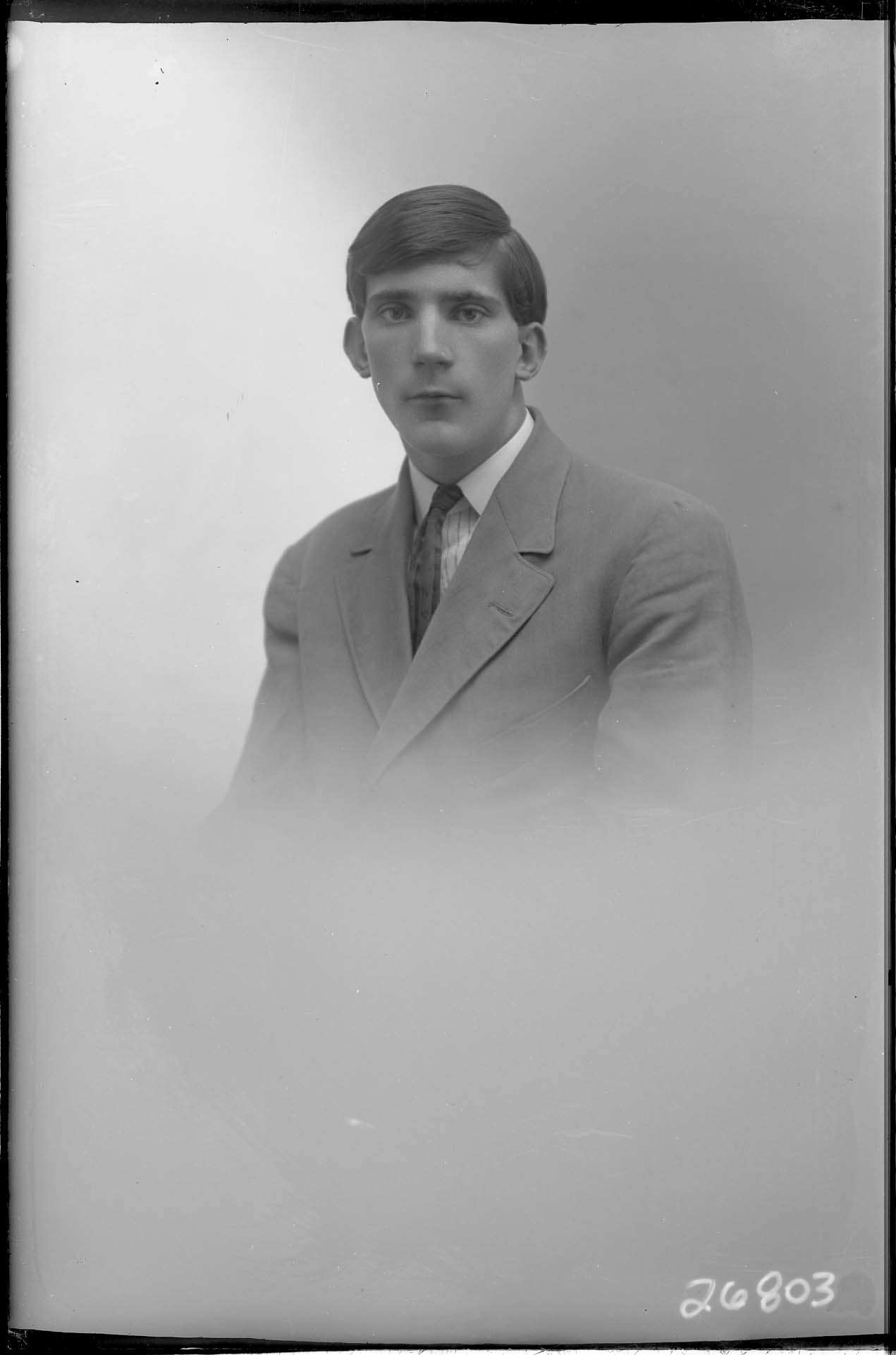 Portrait photograph of an unidentified young man wearing a suit and tie.