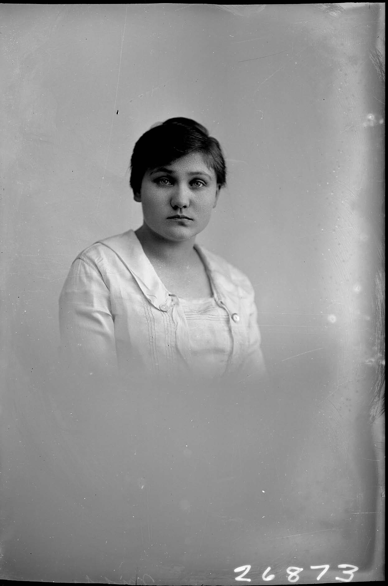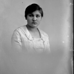Portrait photograph of an unidentified woman with her short hair parted on the side.