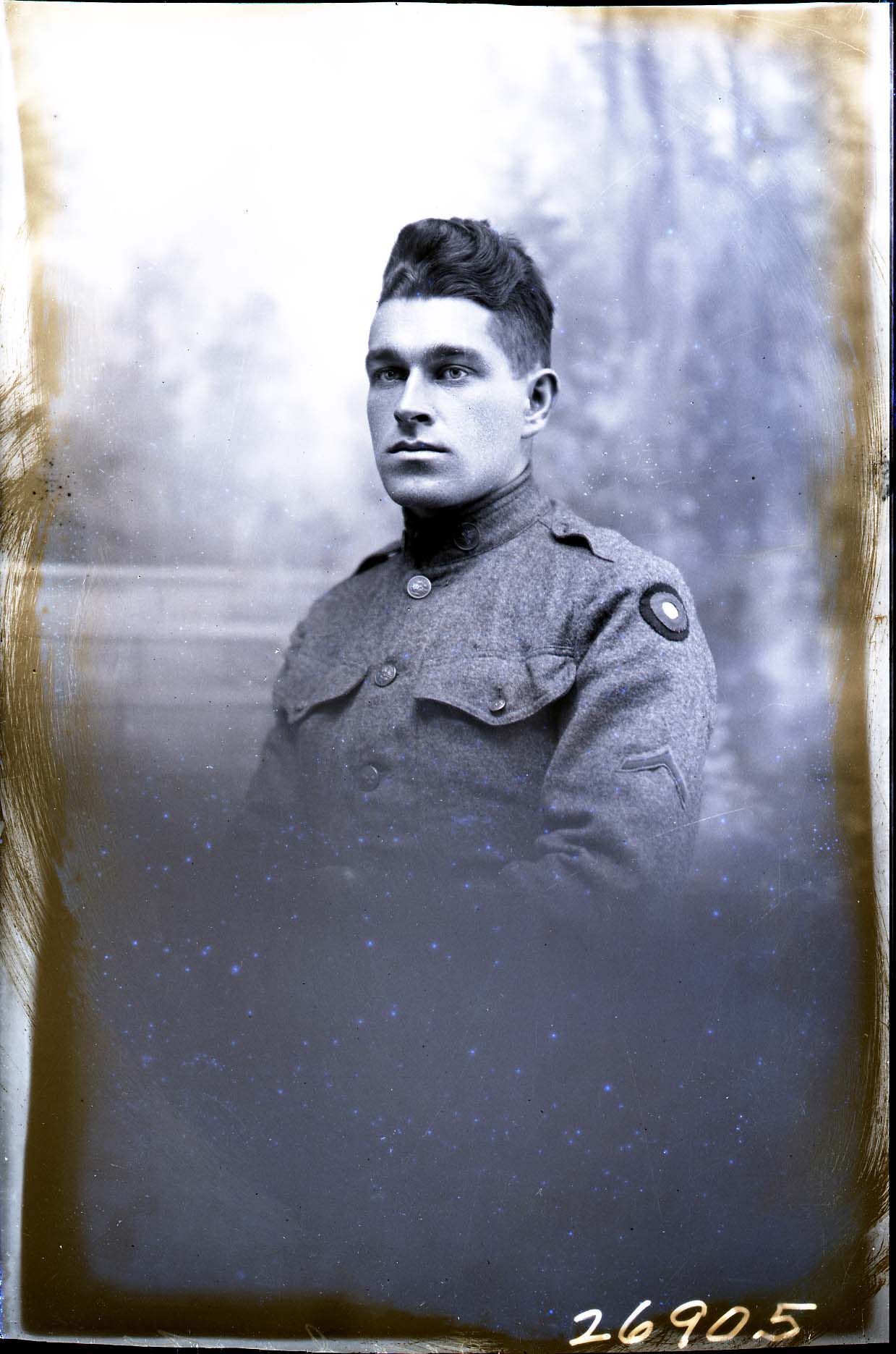 Portrait photograph of an unidentified soldier in his U.S. Army uniform.