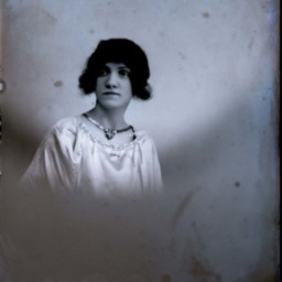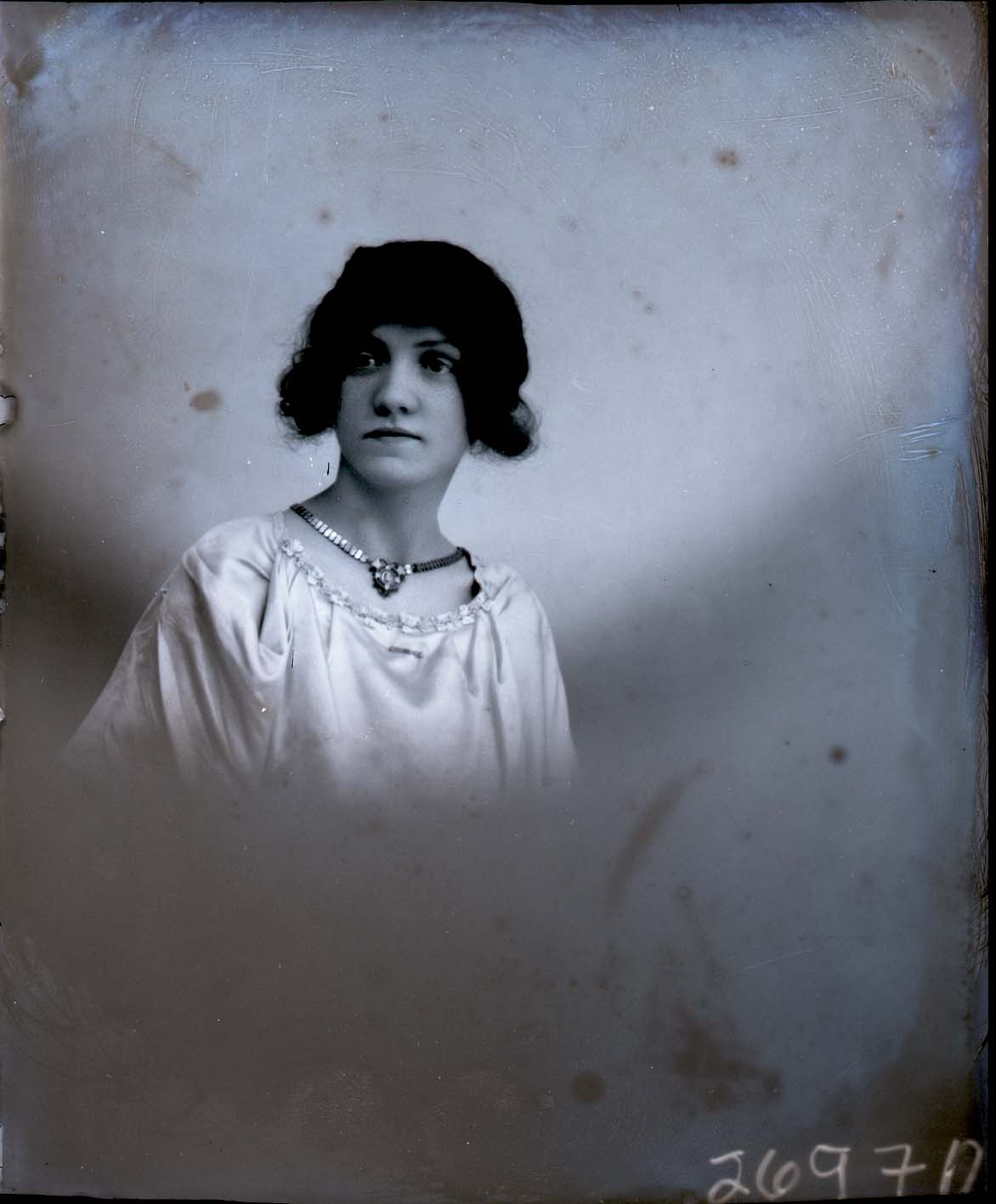 Portrait photograph of an unidentified young woman wearing a necklace with her dress.