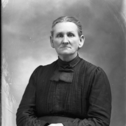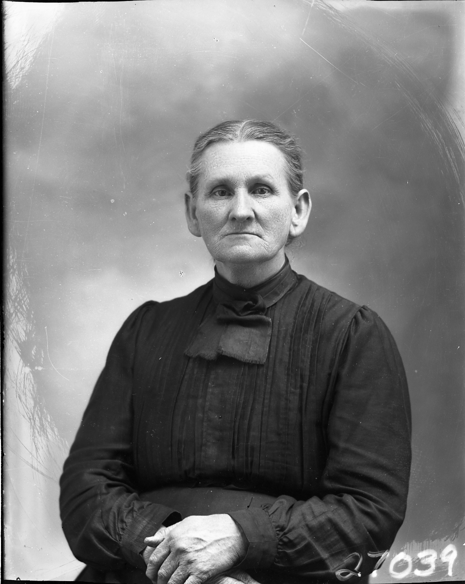 Portrait photograph of an unidentified older woman with her hair pulled back.