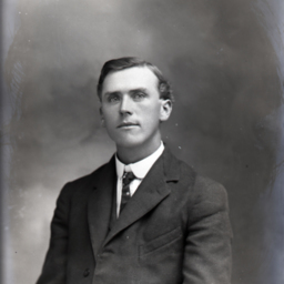 Portrait photograph of an unidentified young man wearing a suit and tie.
