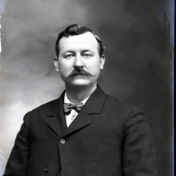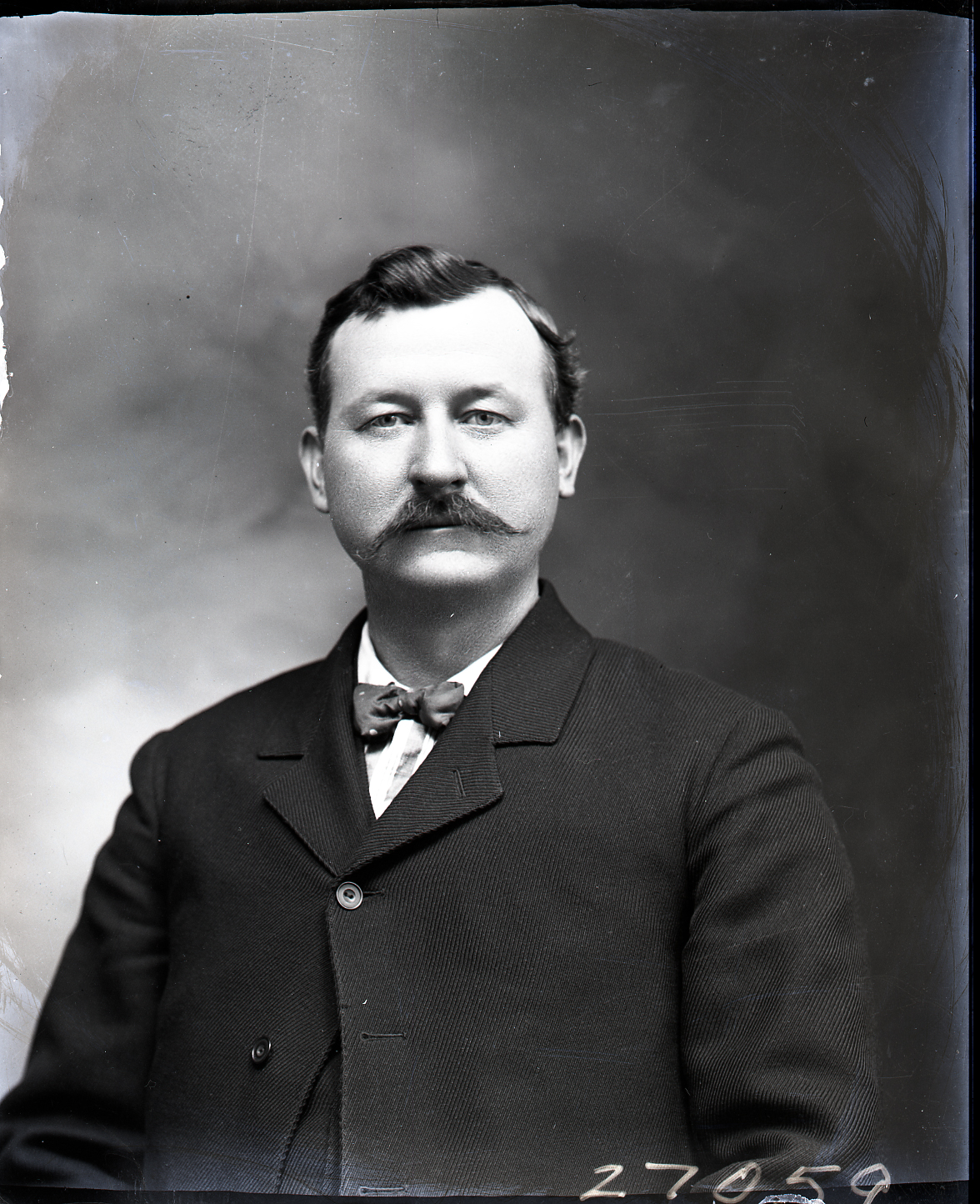 Portrait photograph of an unidentified man with a mustache and wearing a suit and bow tie.