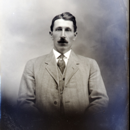 Portrait photograph of an unidentified may with a mustache and wearing a suit and tie.