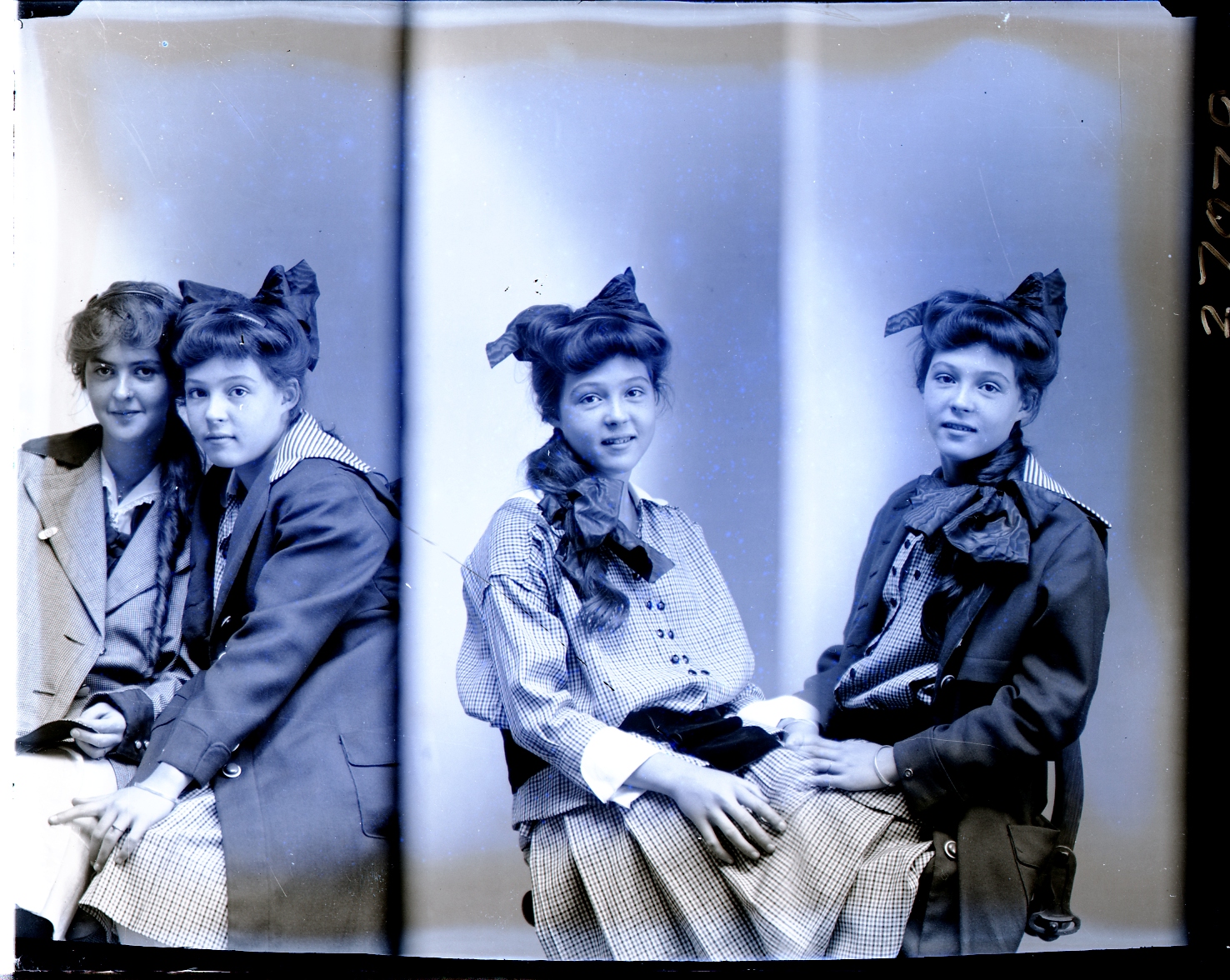 Same unidentified young woman in the middle and right image of this photograph appears in Morrison Studio Collection numbers 027079 and 027080 (right image).