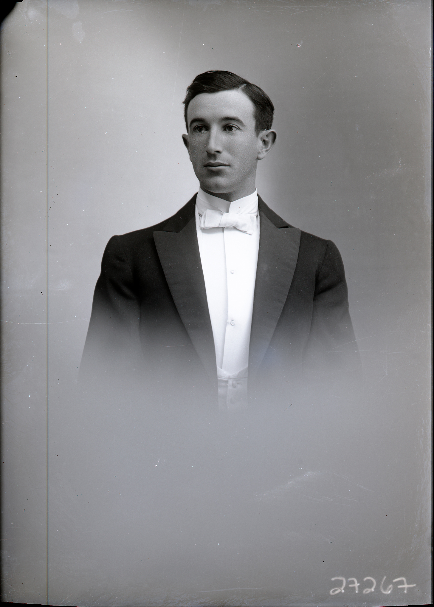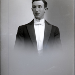 Portrait photograph of an unidentified young man wearing a formal suit and bow tie.