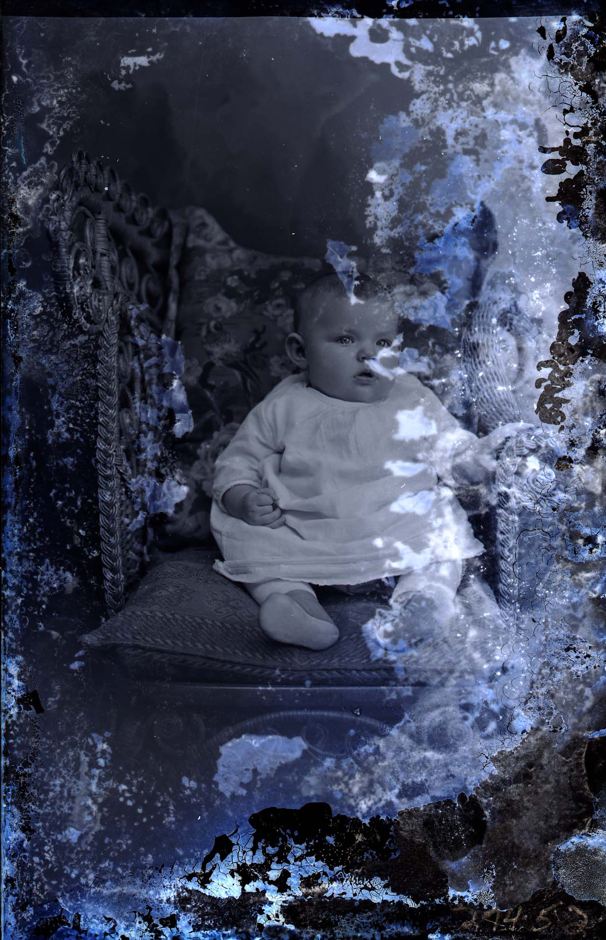 Emulsion damage to the glass plate is visible.