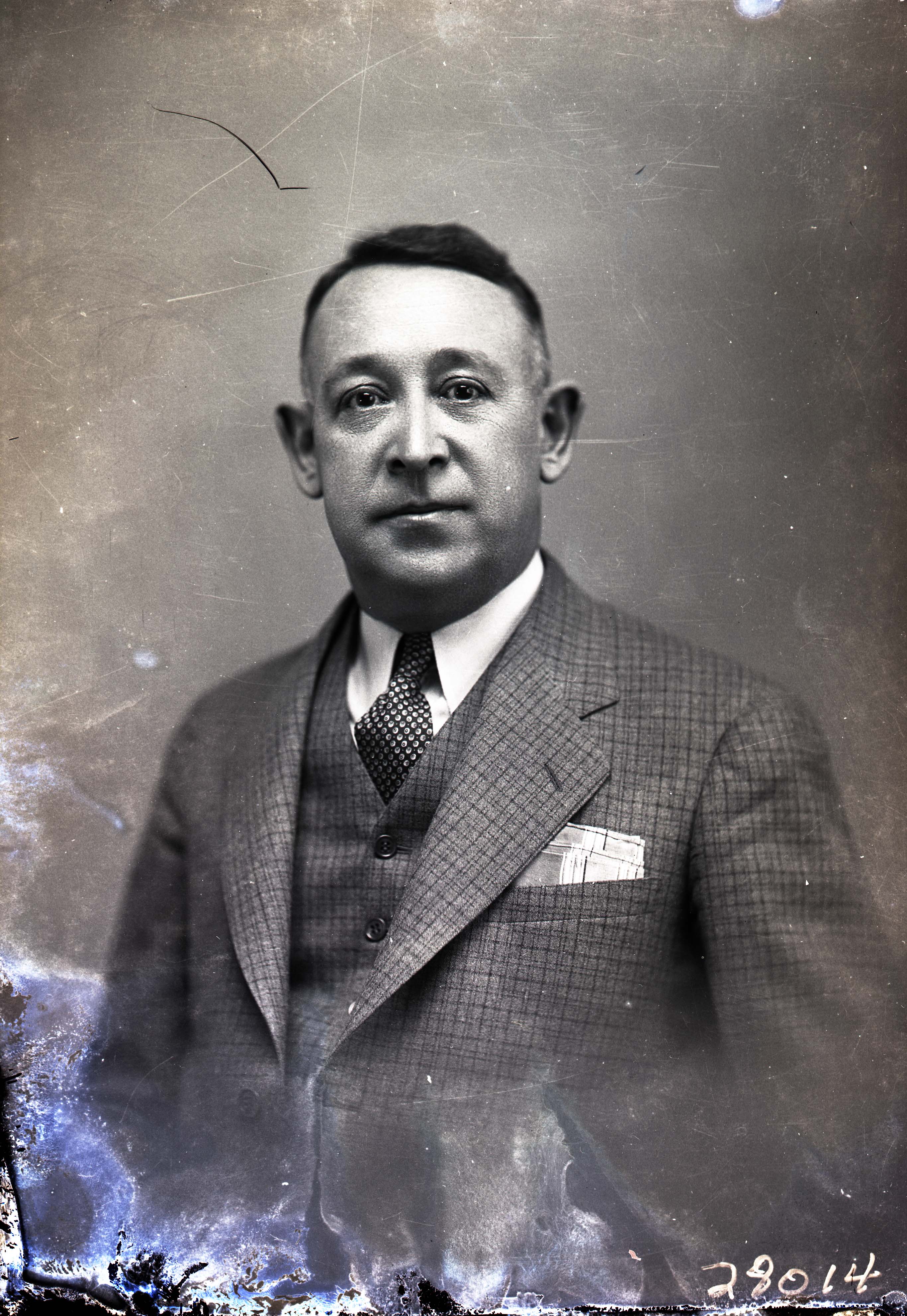 Portrait photograph of George W. Clower wearing a checkered suit and tie.