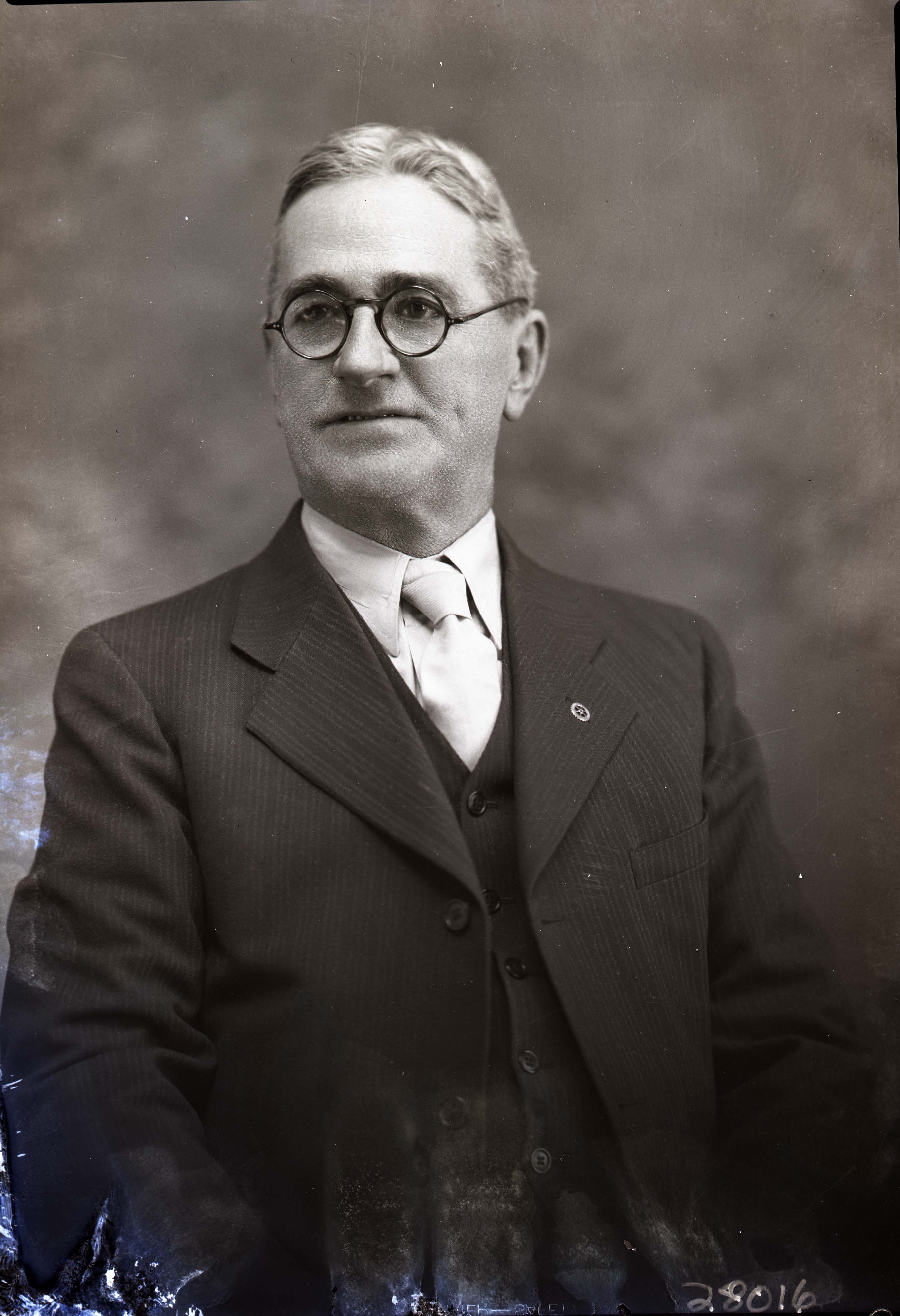 Portrait photograph of J. Grove Kneisley with round glasses and wearing a suit and tie.