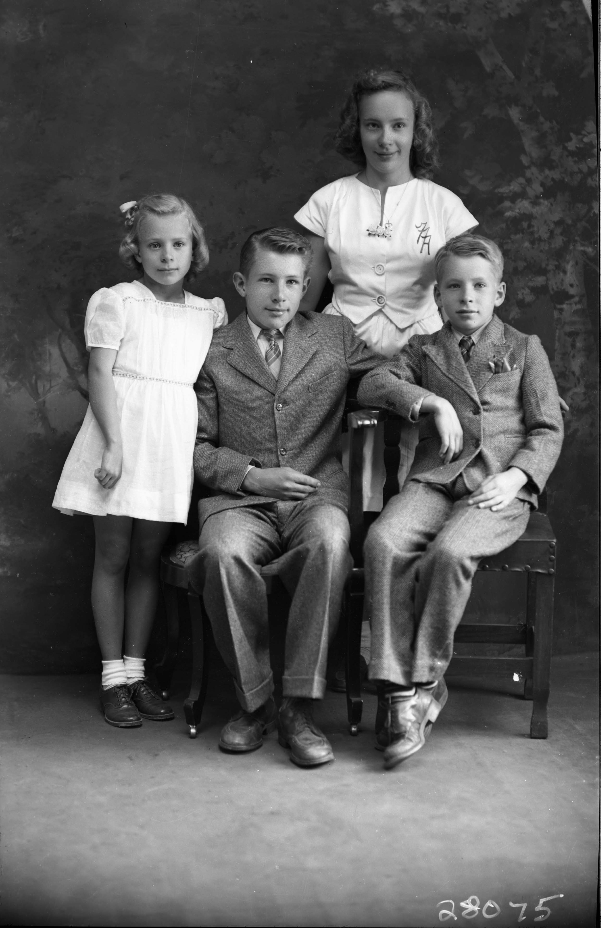 Four unidentified children of different ages, two boys and two girls, are posed together.