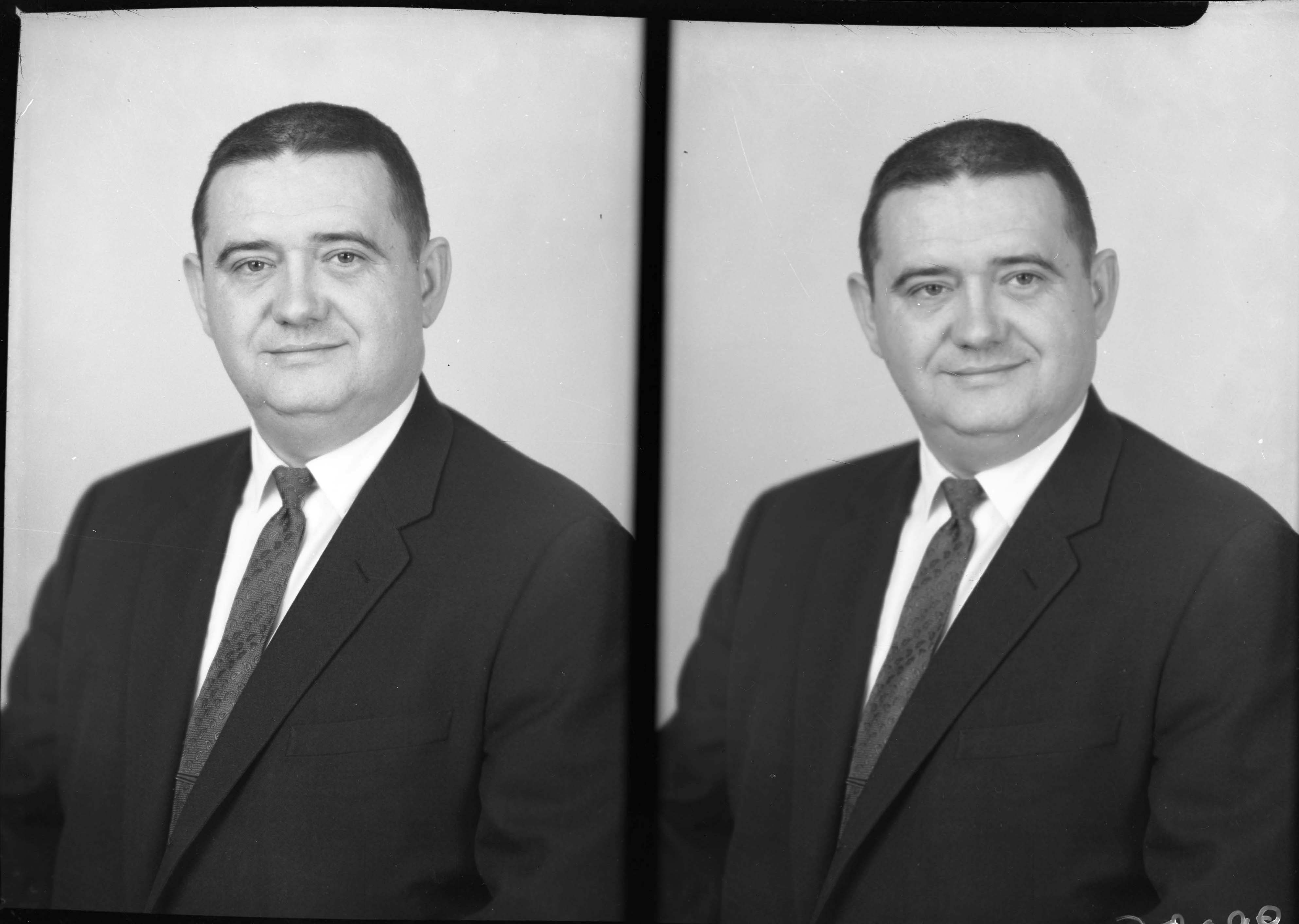Photo of two separate images of the same unidentified man wearing a suit and tie.