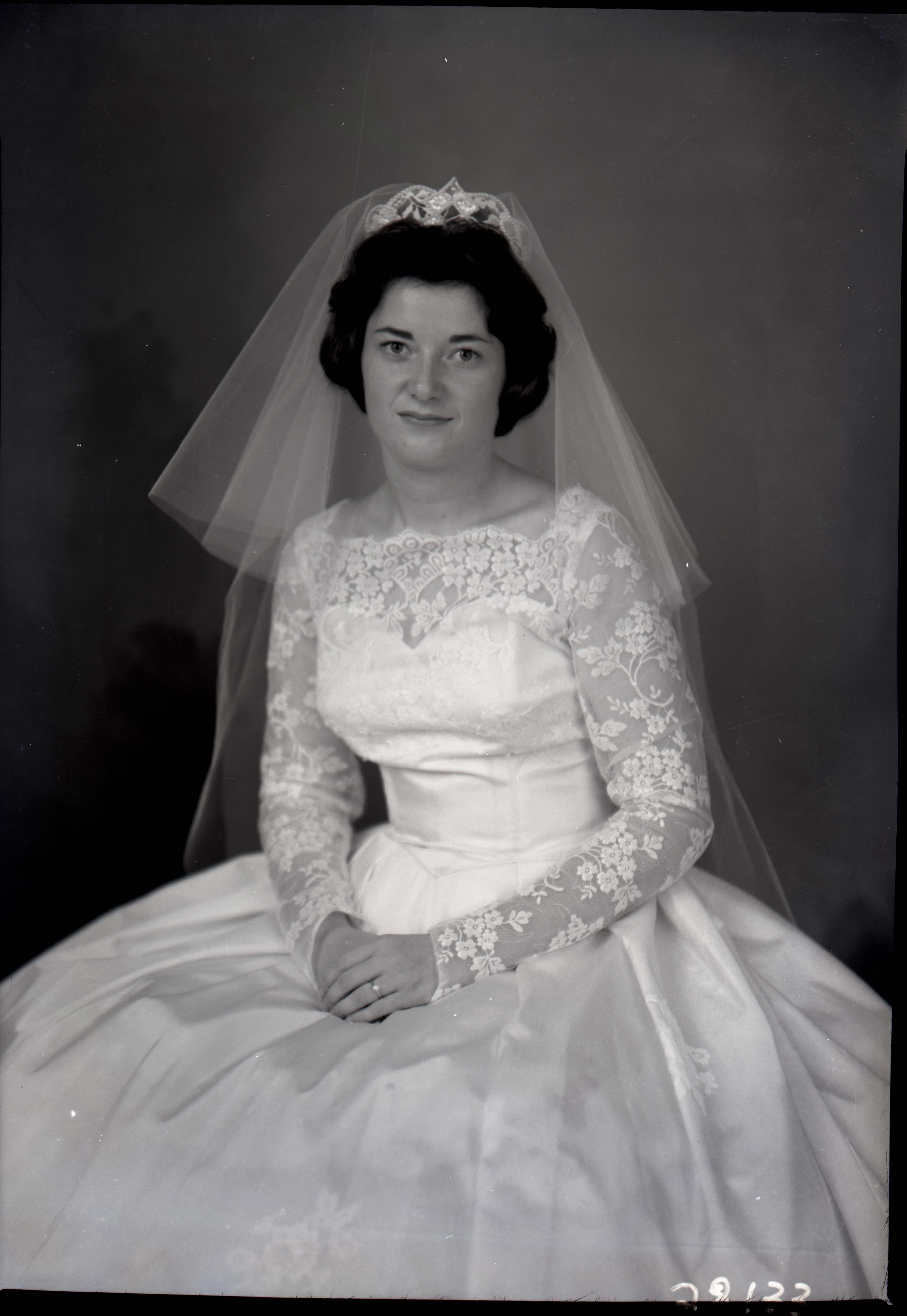 Photograph of Elizabeth "Sue" (Hollingsworth) Grant as a young bride in her wedding veil and gown.