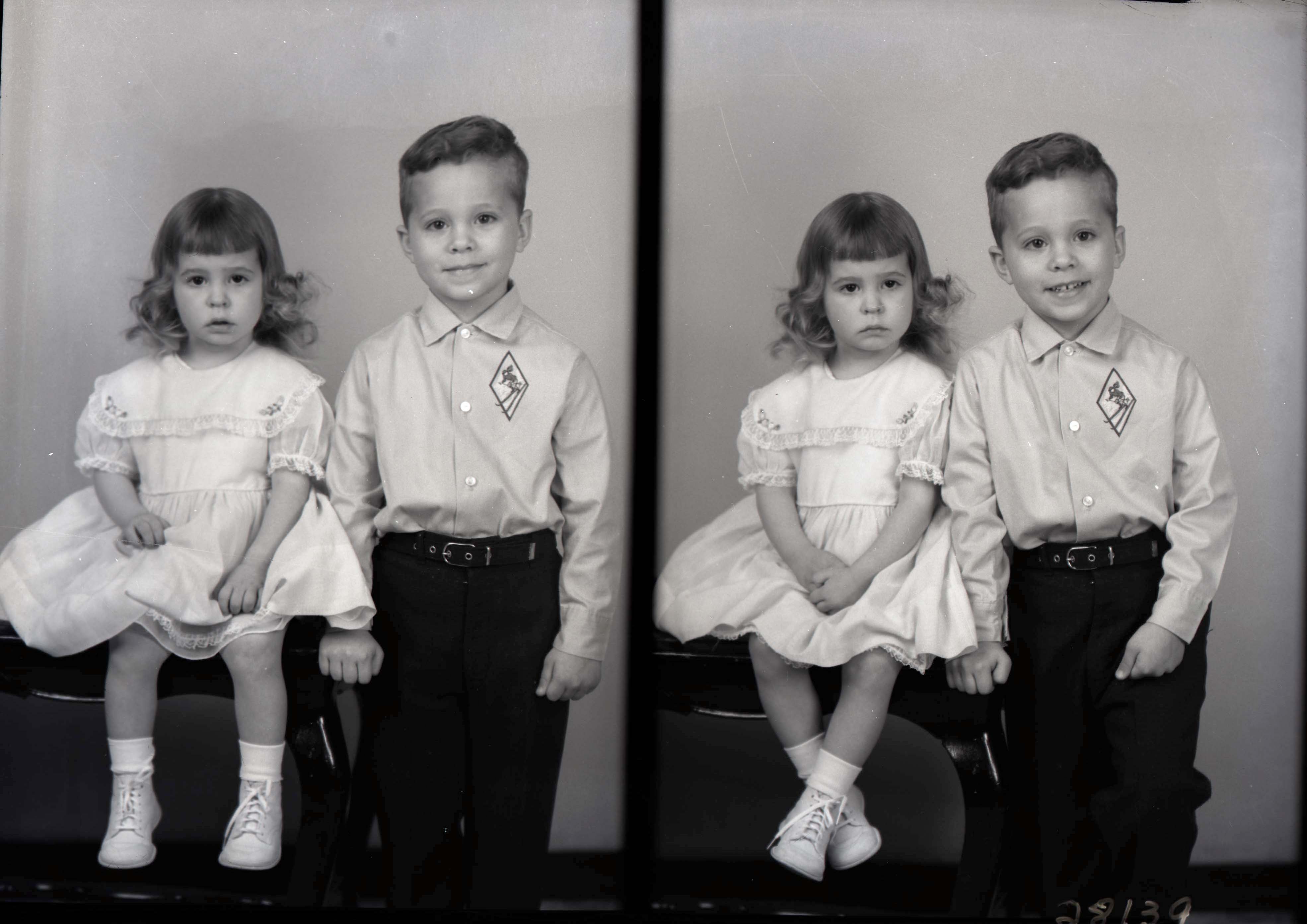 Photo of two separate images of Sharon and Terry Martin as young children, posed together.