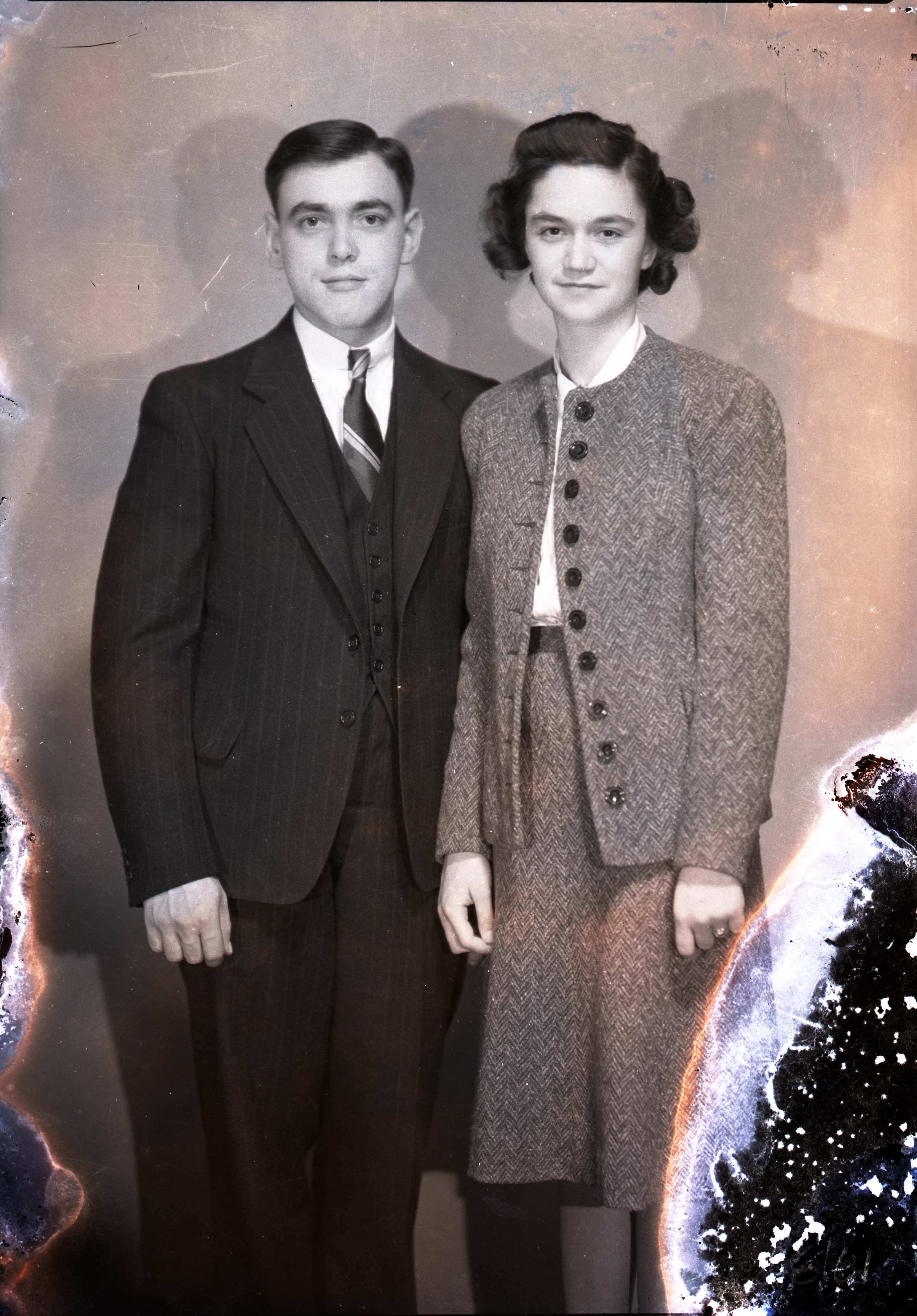 Photograph of John Robert Wilkins standing beside his wife, Margaret P. (Fravel) Wilkins.