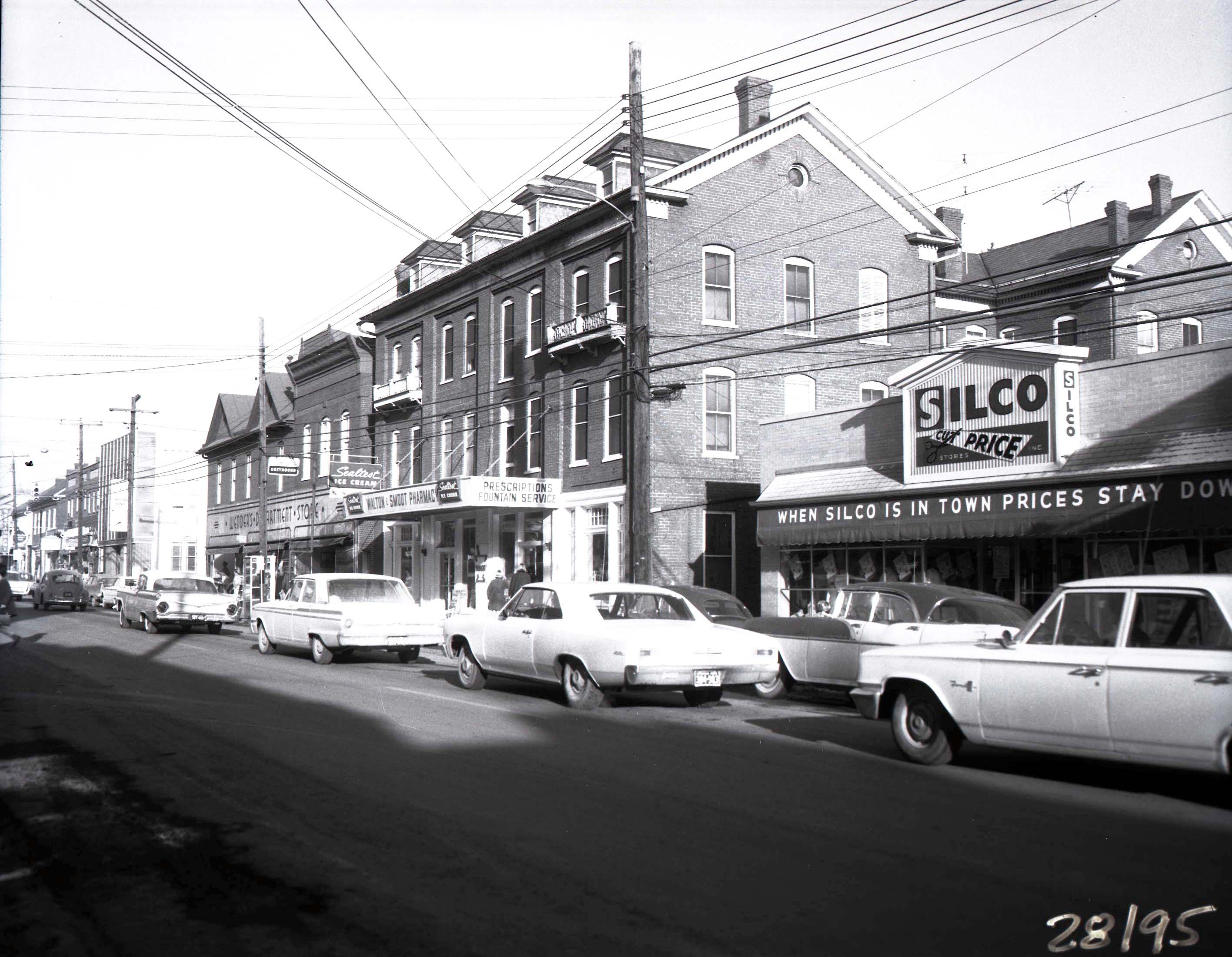 The three-story brick building housing Wenders and the pharmacy is now two-stories tall.